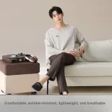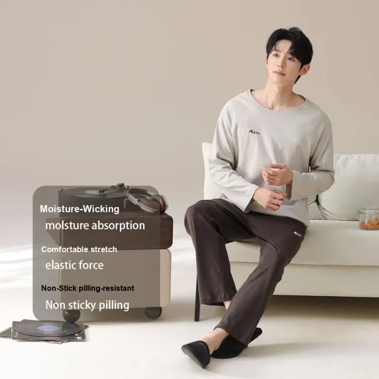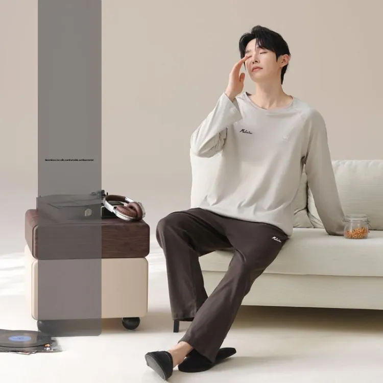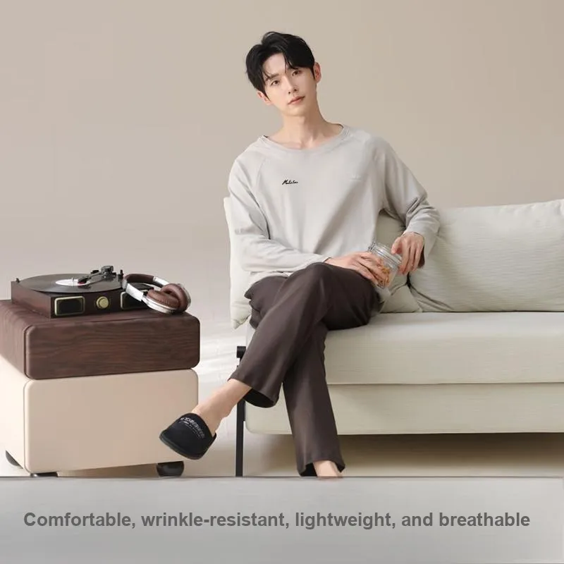 Mulinsen [Длинный рукав Топ+Штаны] Светлый Бежевый Черный Мужской Пижамный Комплект
