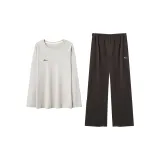 [Длинный рукав топ + штаны] Светлый бежевый - Черный