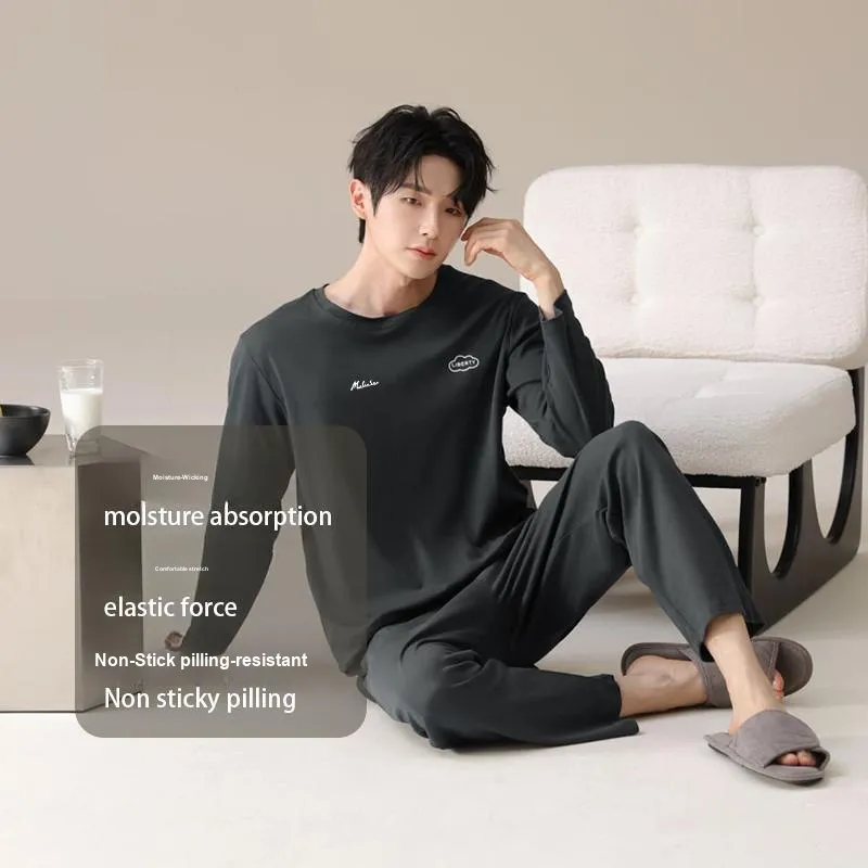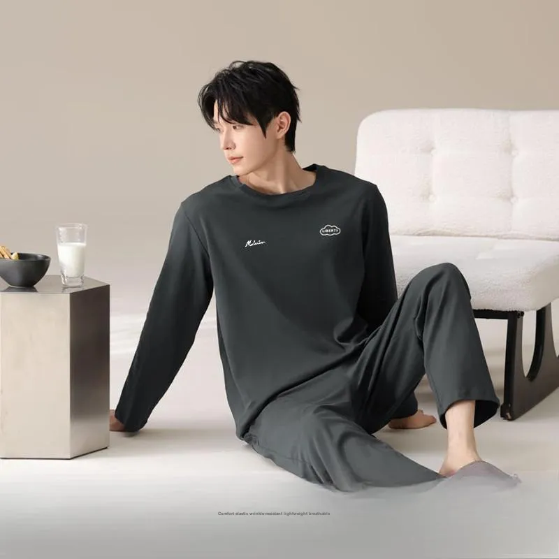 Mulinsen [Длинный рукав Топ+Штаны] Темно-серый Мужской Пижамный комплект