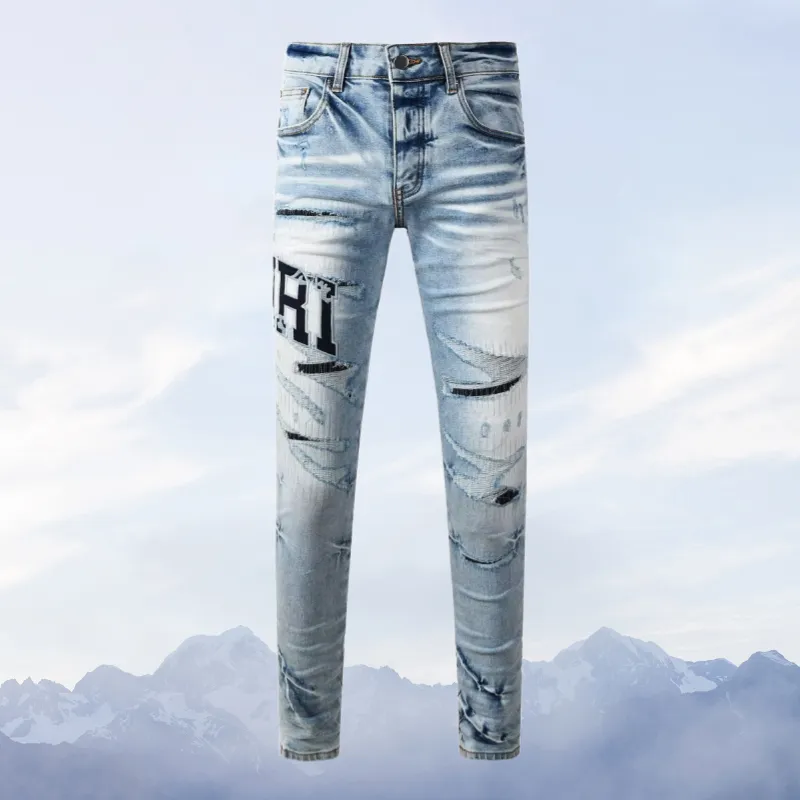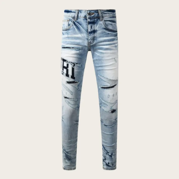 MUMUTU Light Blue Men's Jeans MUMUTU Светло-голубые мужские джинсы