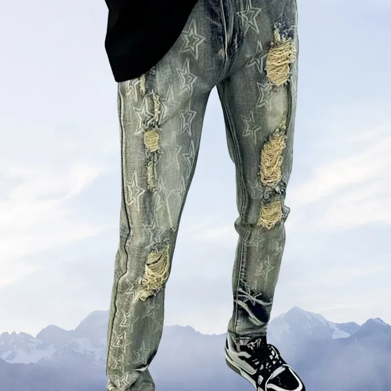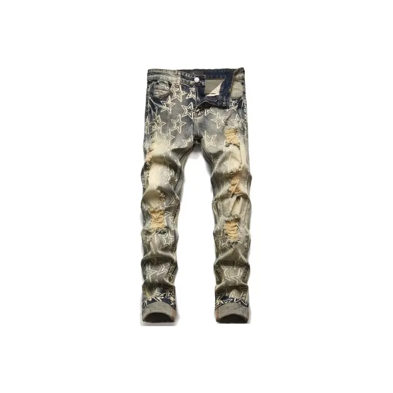 MUMUTU Желтые Грязные Мужские Джинсы