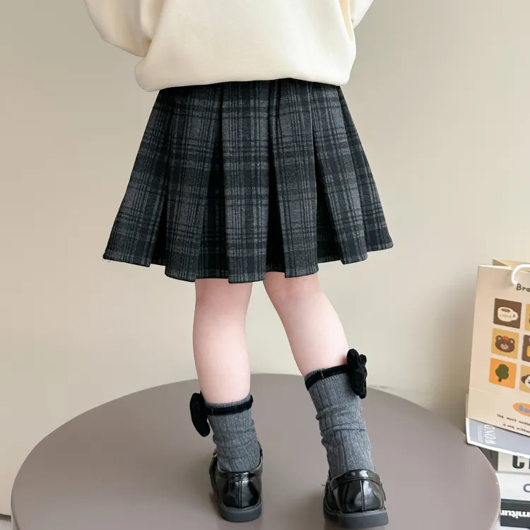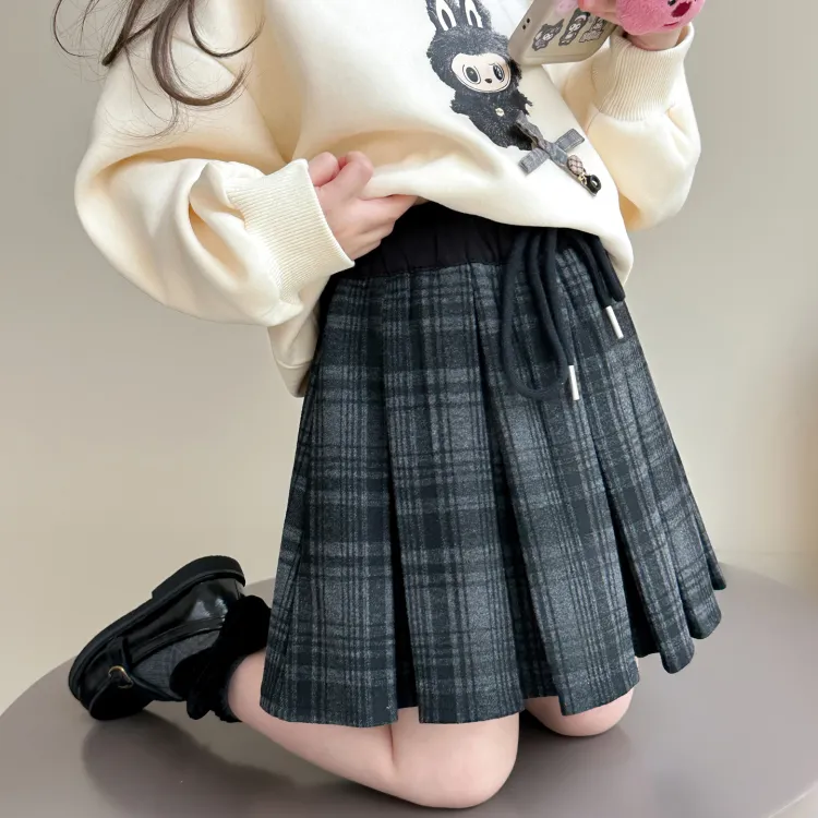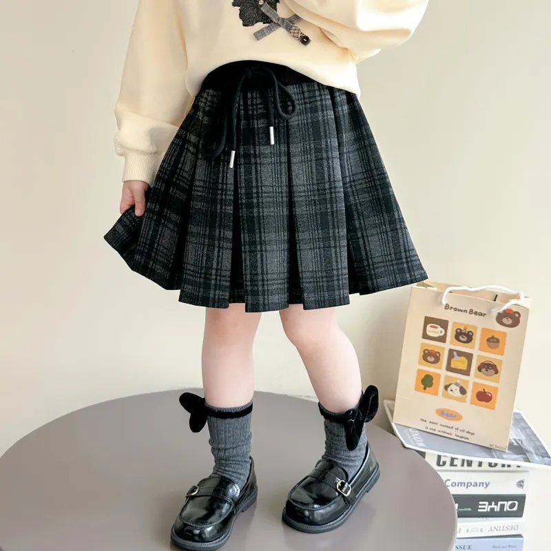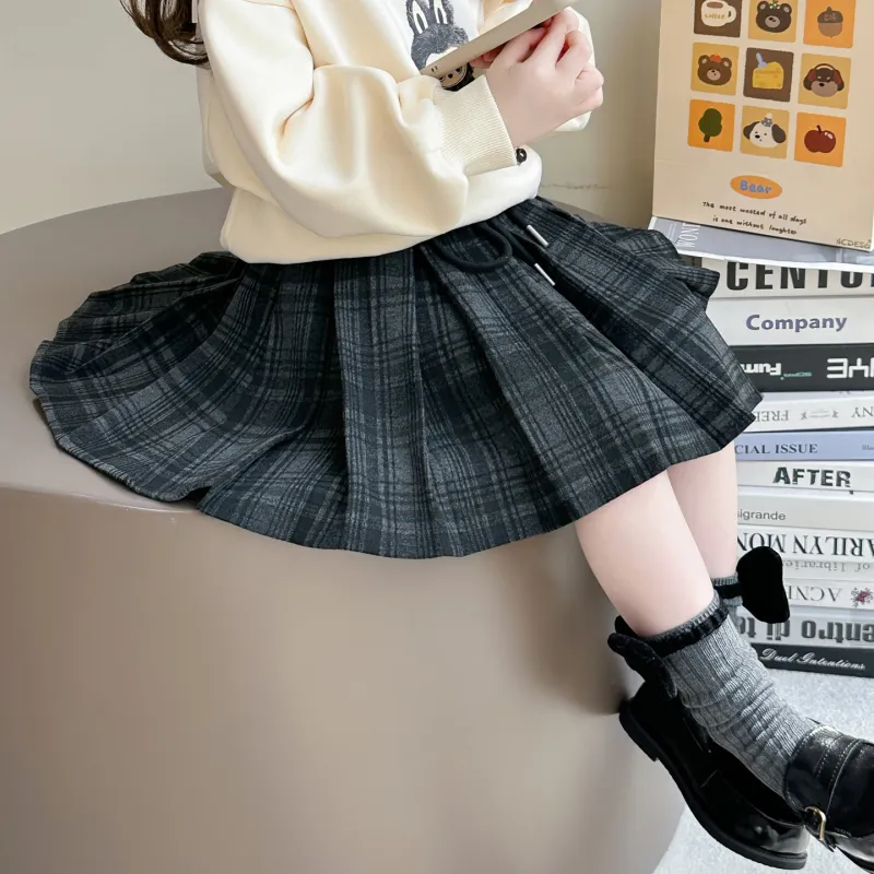 MUMUWU HOUSE Юбка Милый Детский Сладкий стиль Девушка Клетчатая Юбка с Плиссировкой Детская