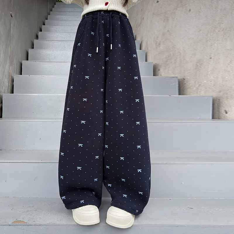 MUQINGQING Темно-синие штаны для школьников с флисовой подкладкой