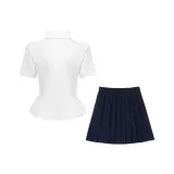Комплект одежды: Белая рубашка + Темно-синий бант + Юбка в строгом клетчатом узоре