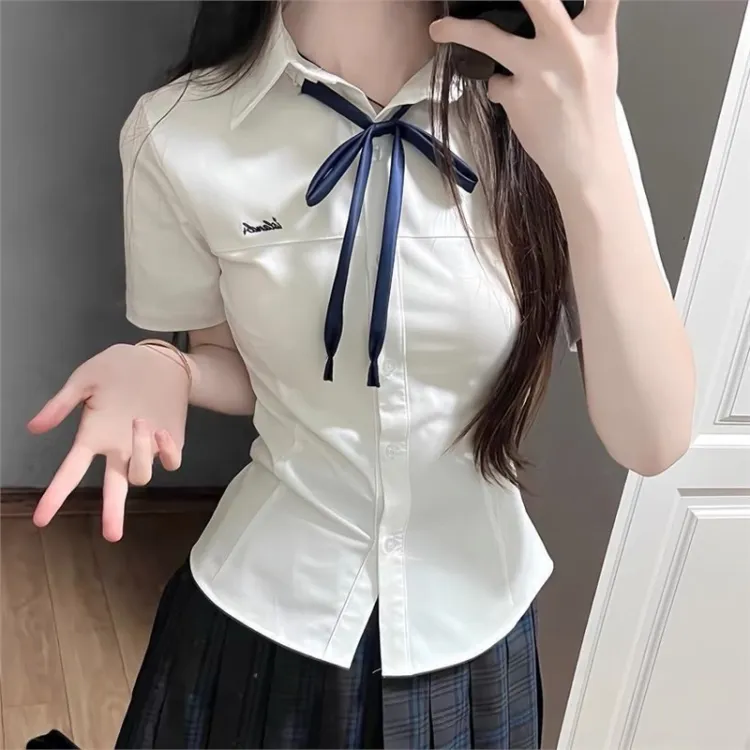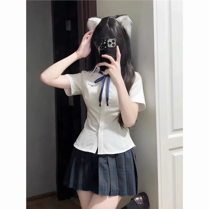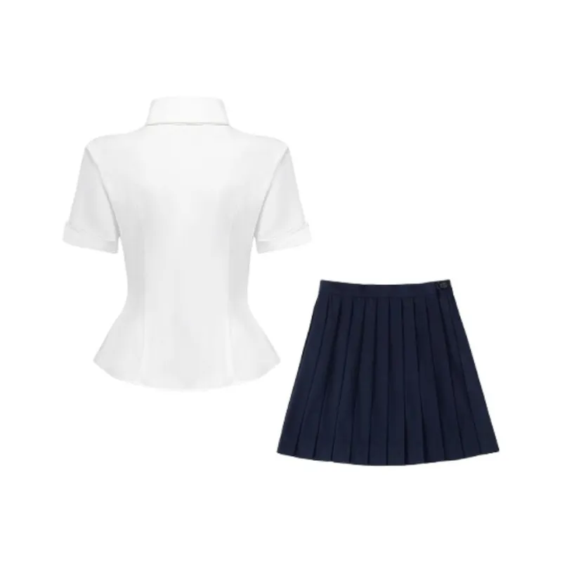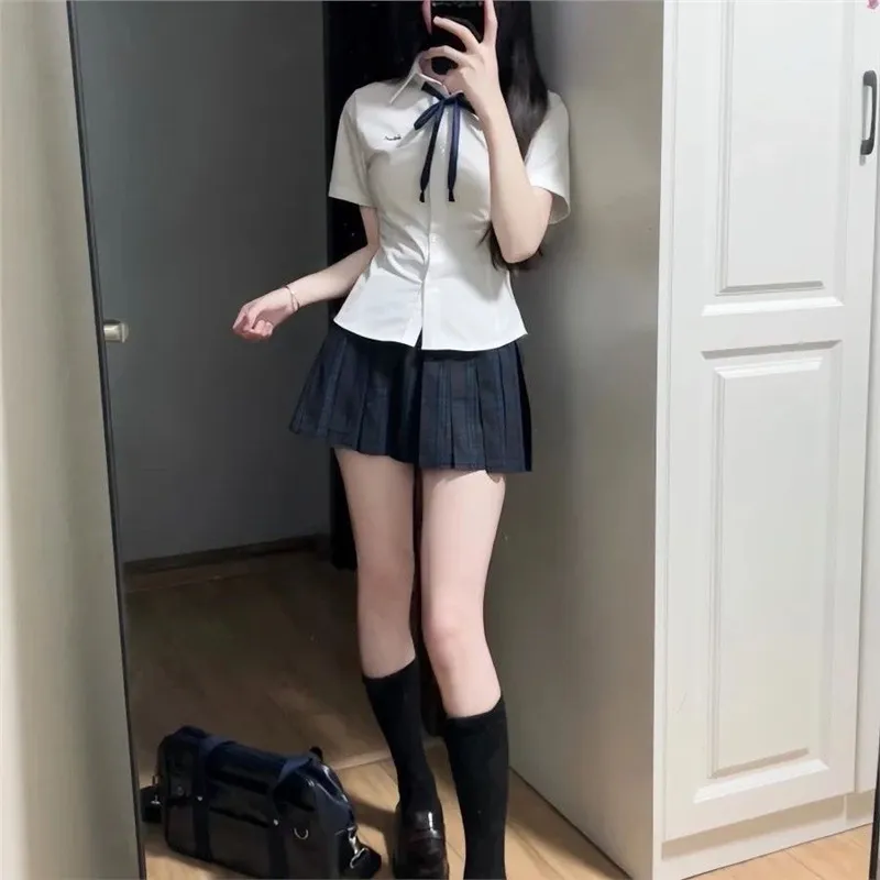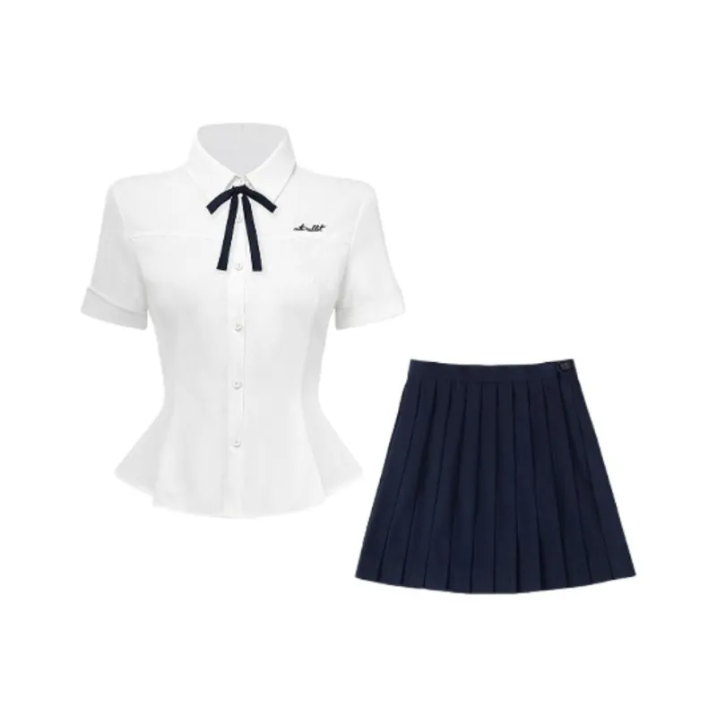 Комплект:Комплект одежды: Белая рубашка + Темно-синий бант + Юбка в строгом клетчатом узоре