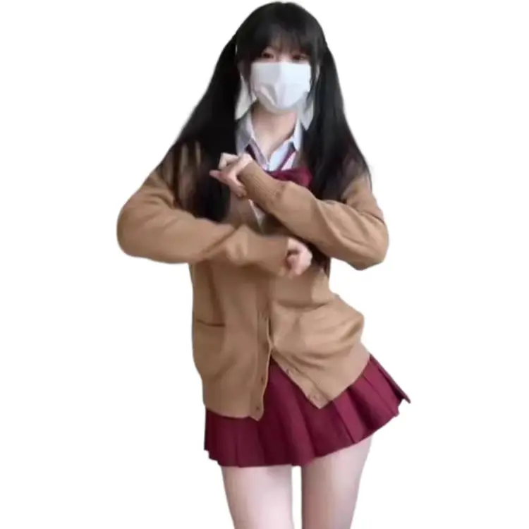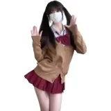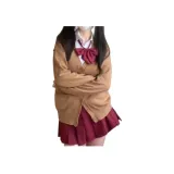 MUQINGQING Рубашка + Галстуки-бабочки + Красная юбка с оборками + Кофейное пальто - Комплект из трех предметов - Женские юбочные комплекты