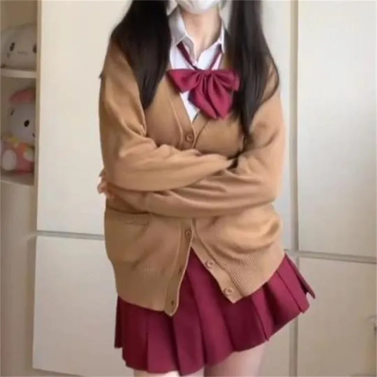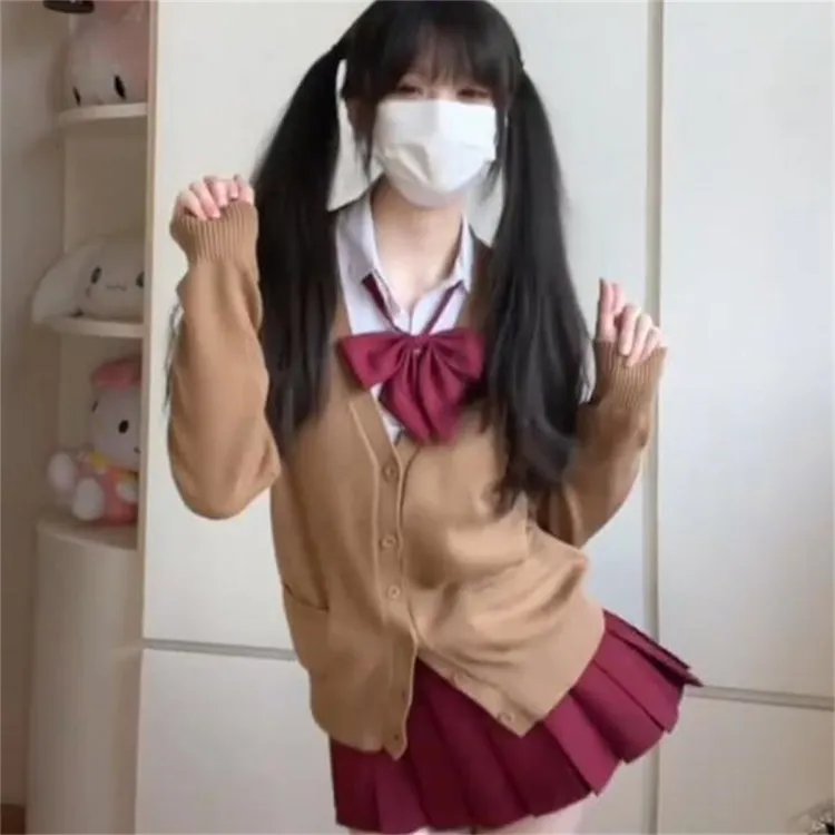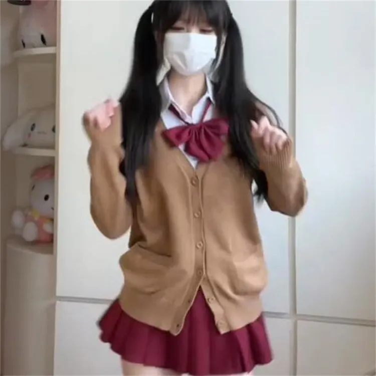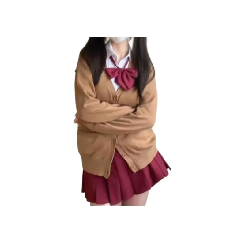 Цвет:Рубашка + Bow Tie + Красная юбка с оборками + Кофейное пальто (трехкомпонентный комплект)