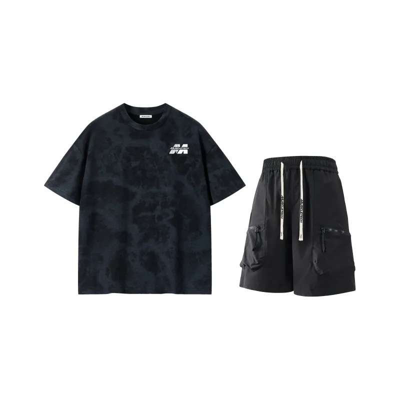 Комплект:Черная футболка+черные шорты