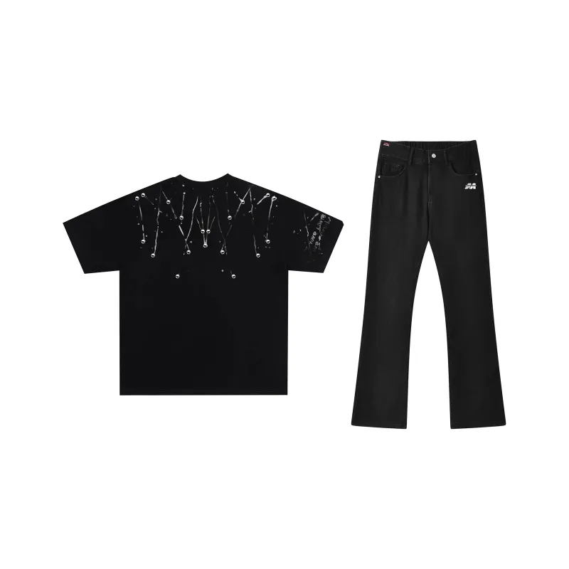 Комплект одежды (Черная футболка + Черные джинсовые штаны)