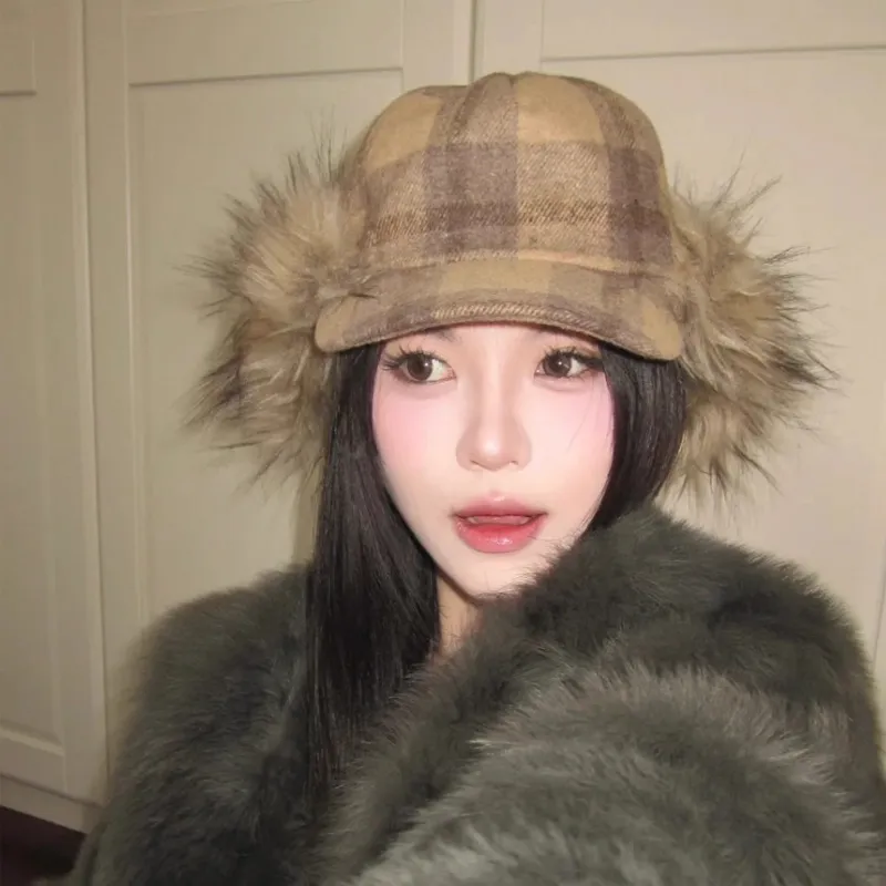 MUSTKOO Плюшевый Клетчатый Шапки-ушанки Женские