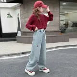 MUTONGSHAONIAN Синие джинсы с флисовой подкладкой для школьников