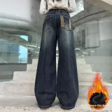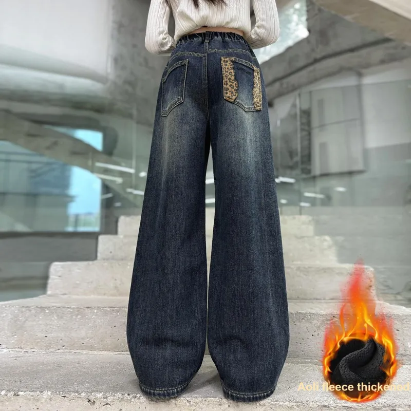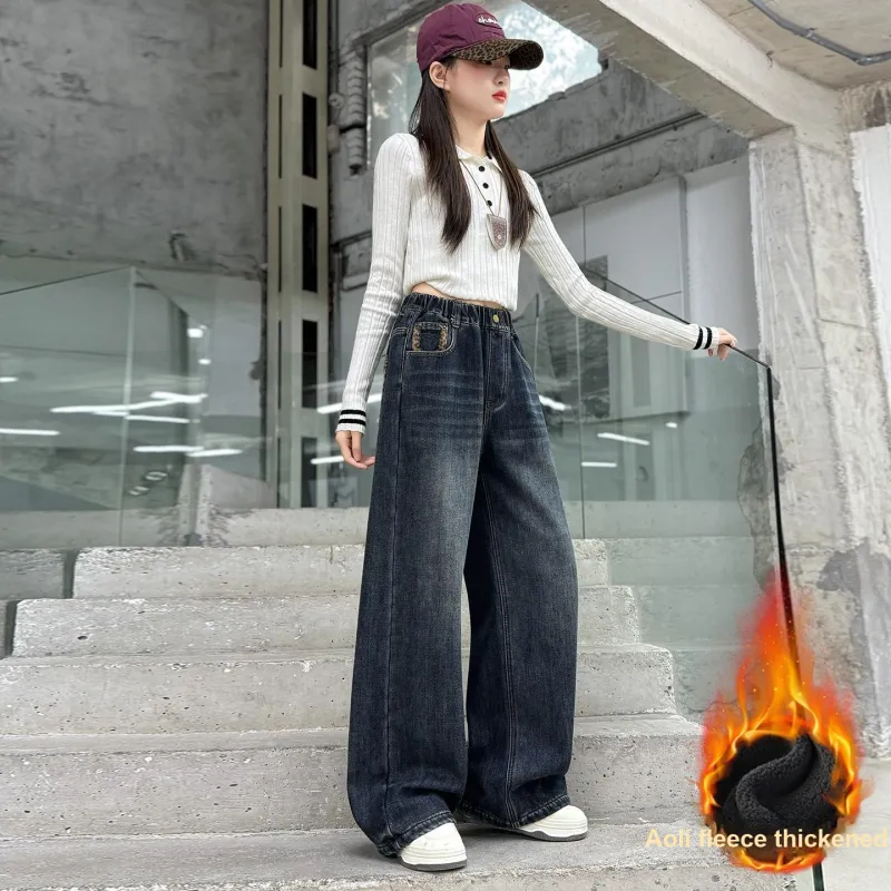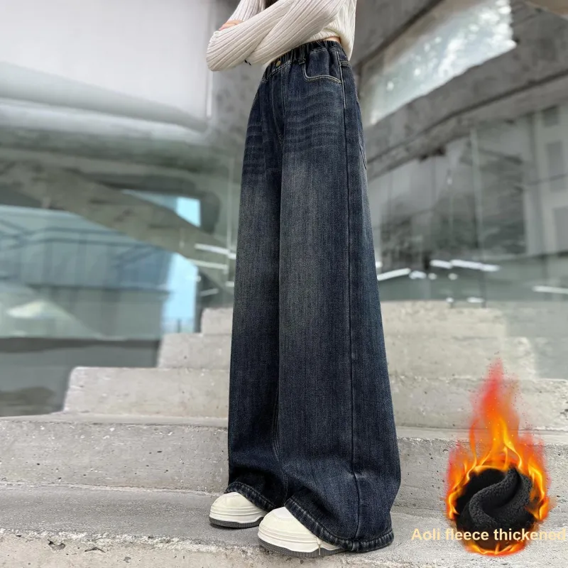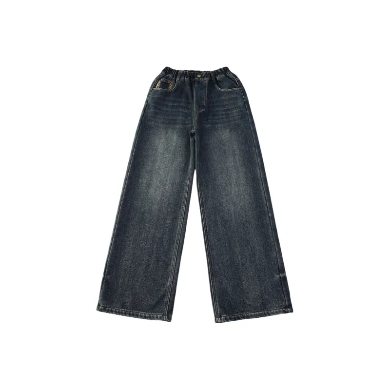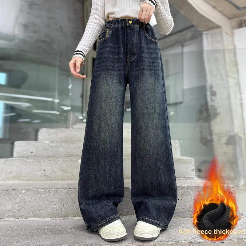 MUTONGSHAONIAN Синие Серые Флисовые Подкладочные Джинсы для Подростков