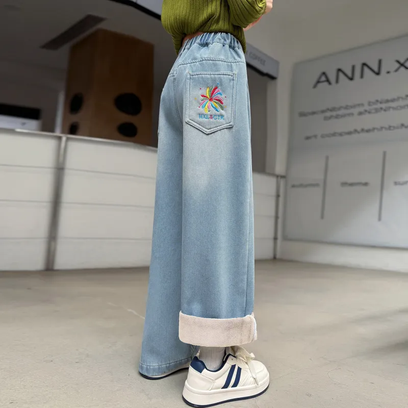 MUTONGSHAONIAN Синие джинсы с флисовой подкладкой для школьников