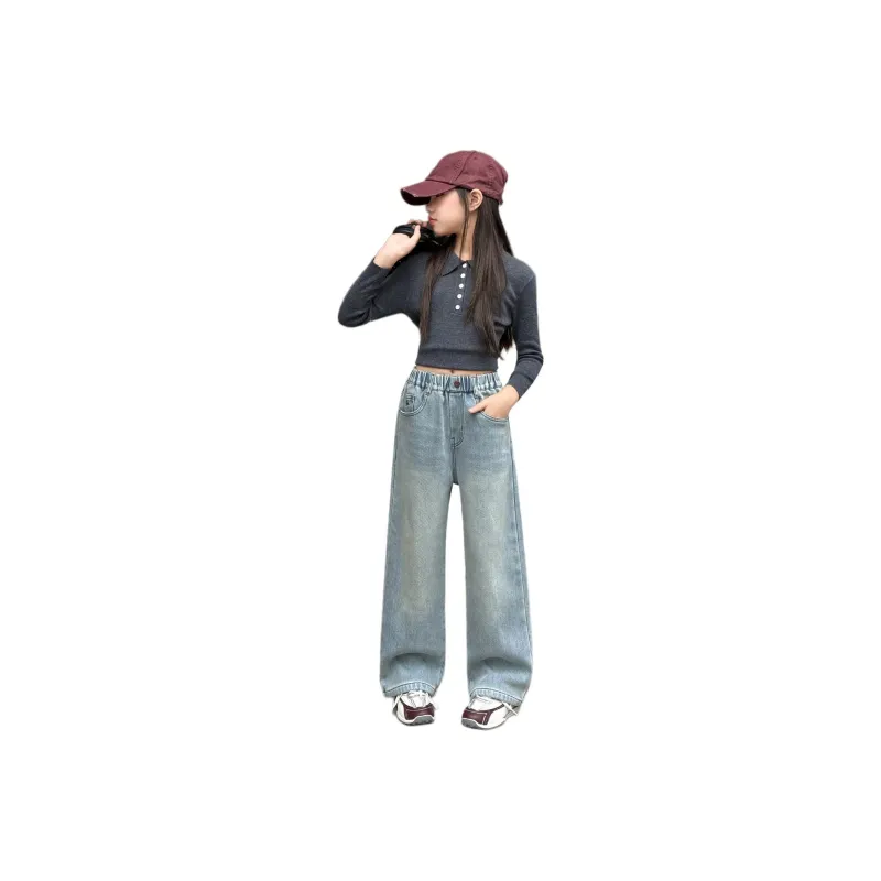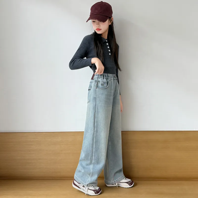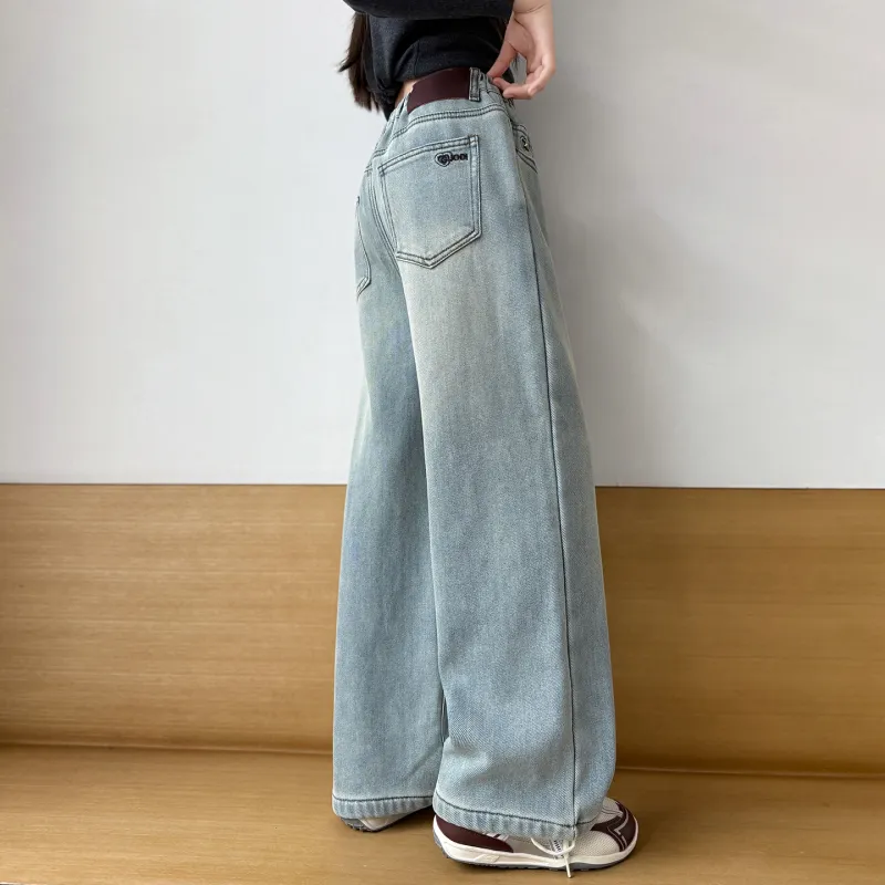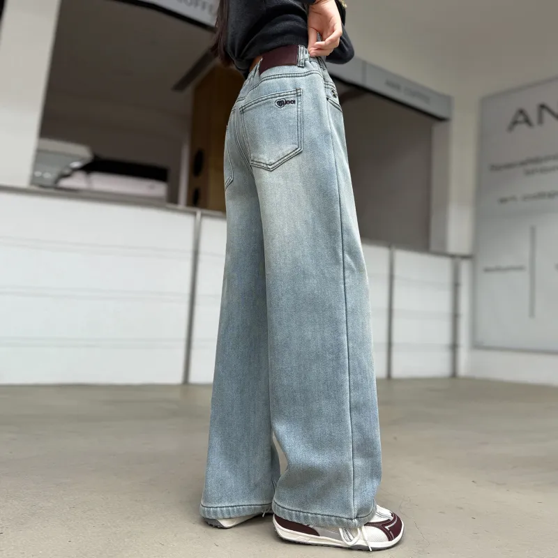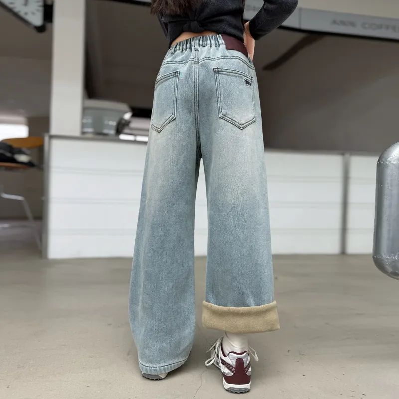 MUTONGSHAONIAN Светло-синие джинсы с флисовой подкладкой для школьников