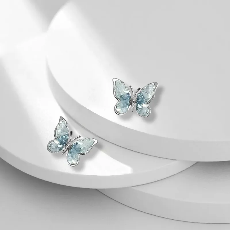 Каменный сахар, бабочка, серьги-гвоздики