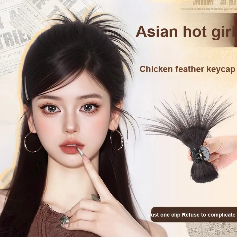 MUYAN Курица Перо Bun Натуральный Наполняемость Semi TWISTED Стиль Перука Заколка-краб