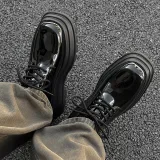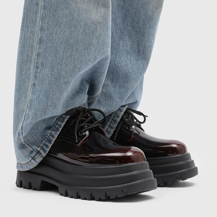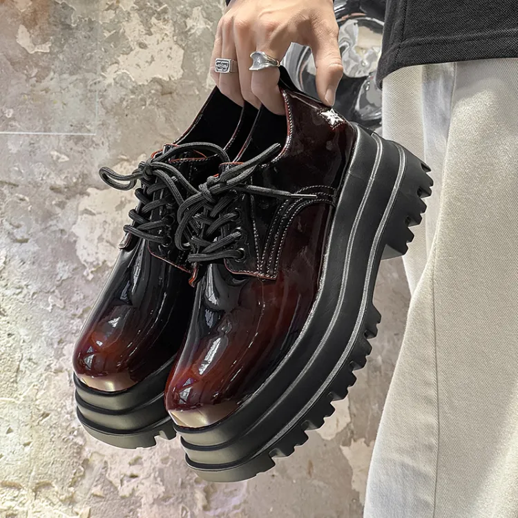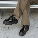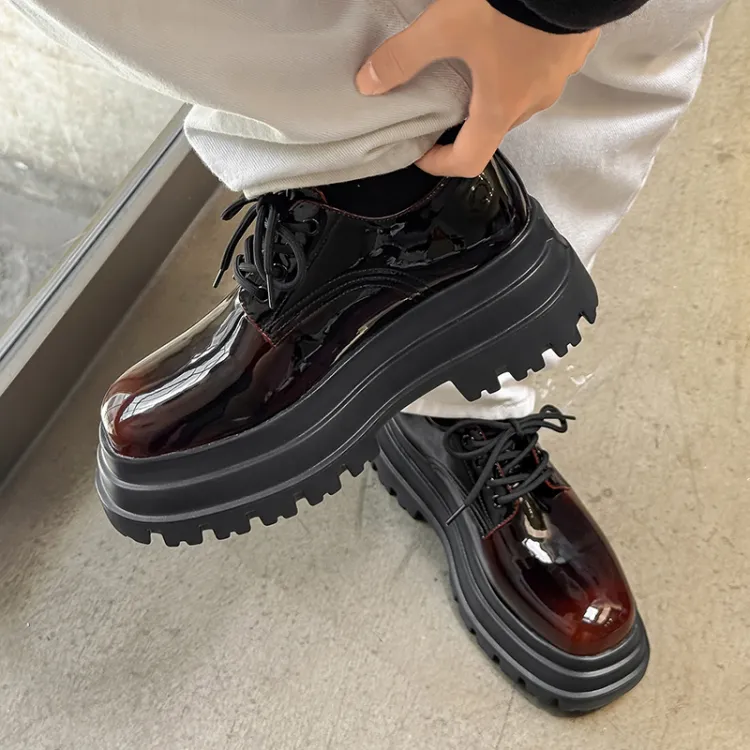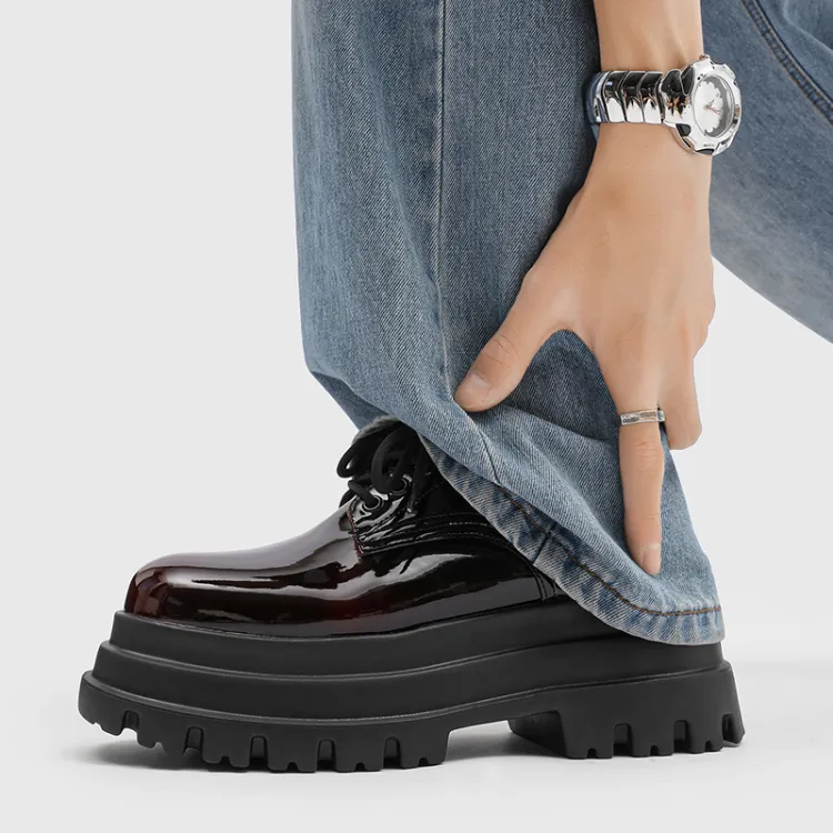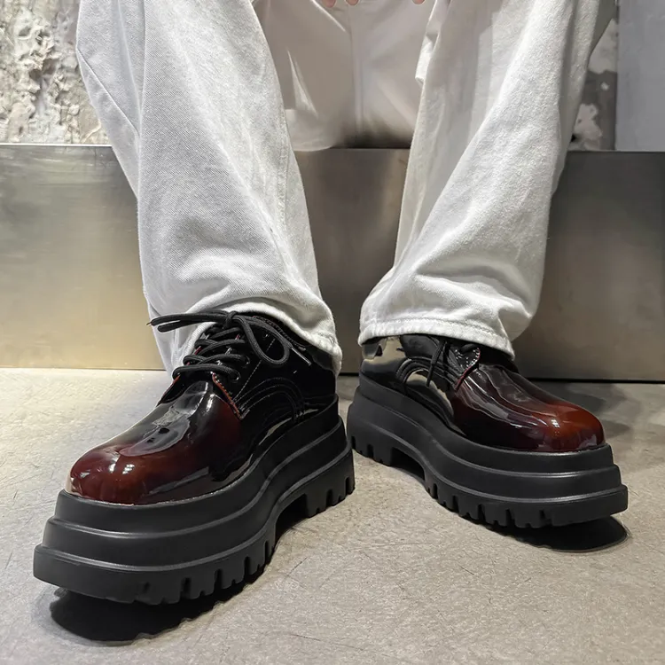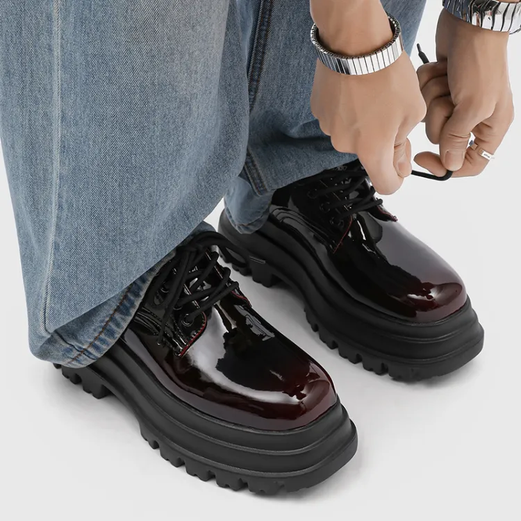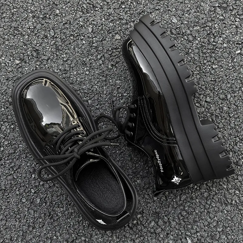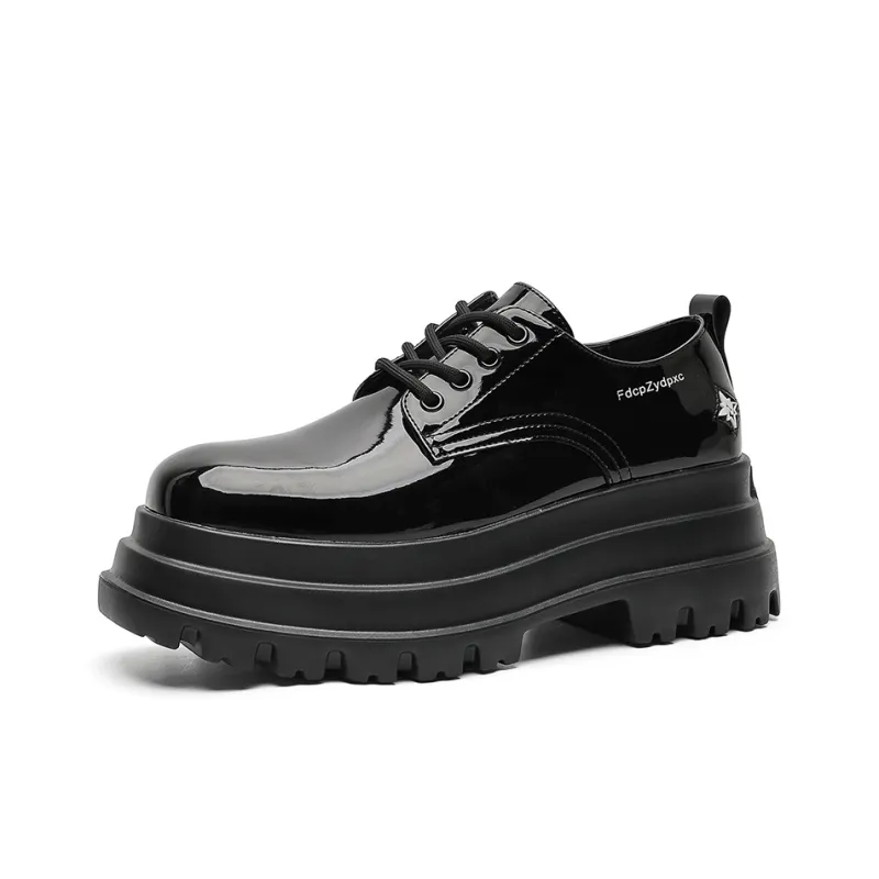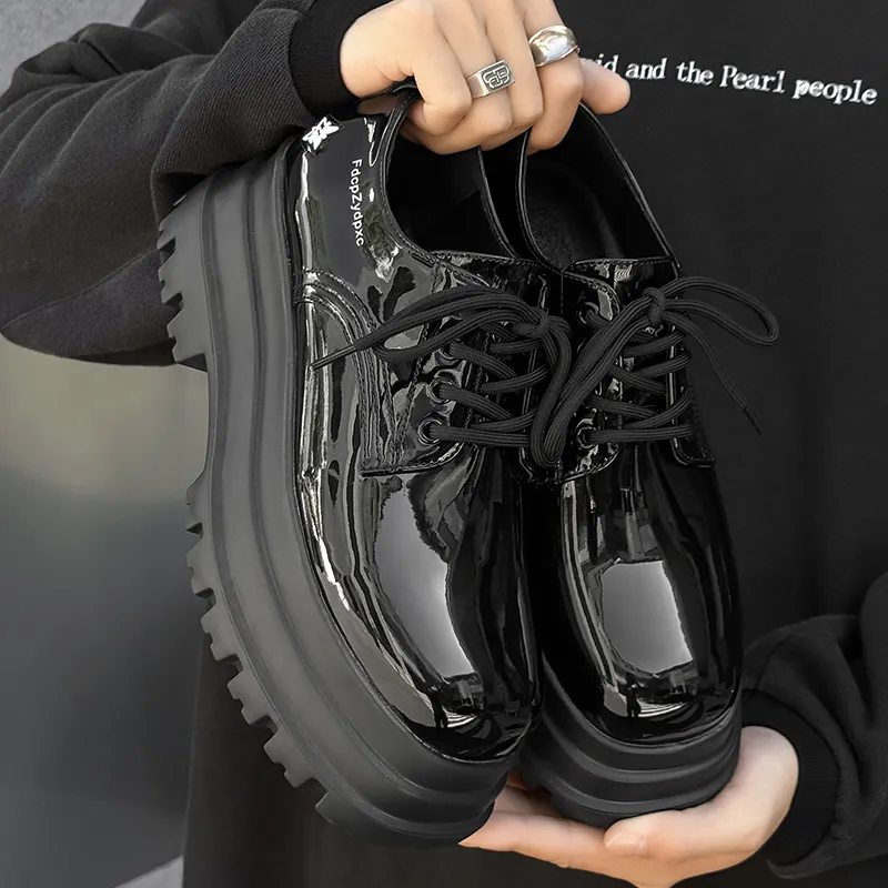 MUYI 7cm Высота Увеличивающая Chunky Кружево Вверх Платформа Обувь Без Подкладки Лакированная Кожа Универсальная Derby Обувь Мужская