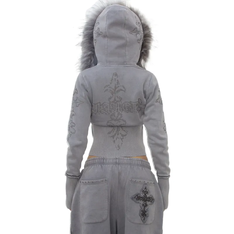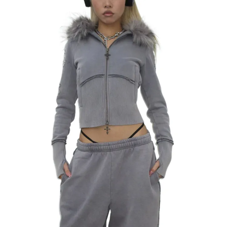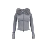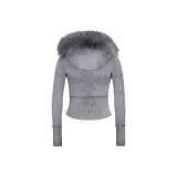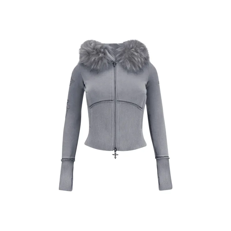 NAMED COLLECTIVE Искусственный мех Облегающий ZIP Толстовка Промытый GREY Съемный мех Свитшот Женские