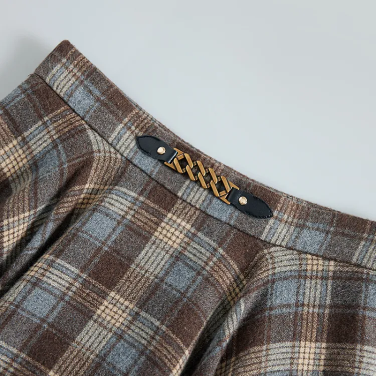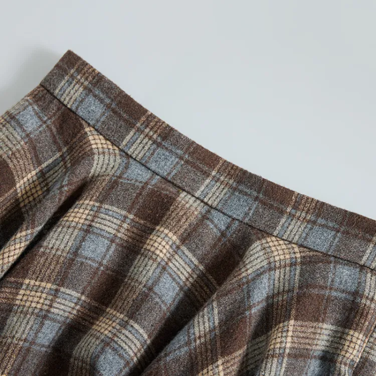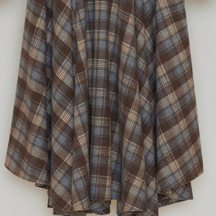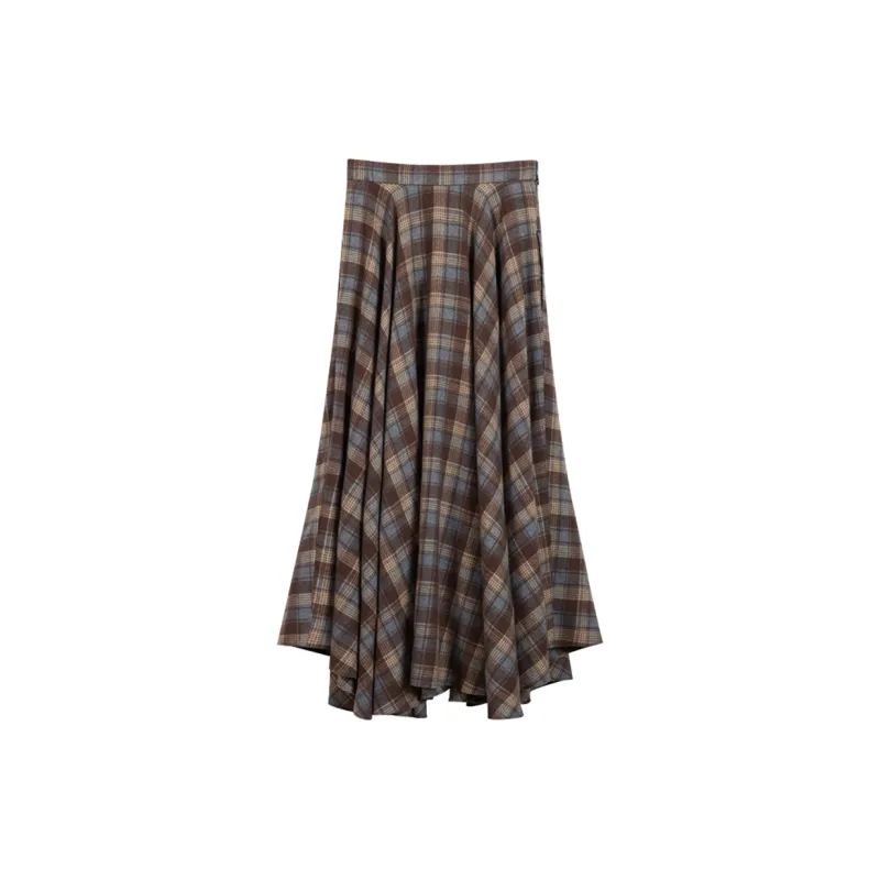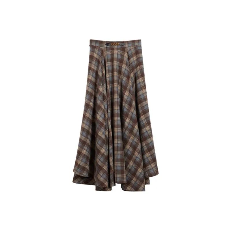 NancyCavally Повседневный Длинный Юбка Женская Сине-Коричневая Клетка