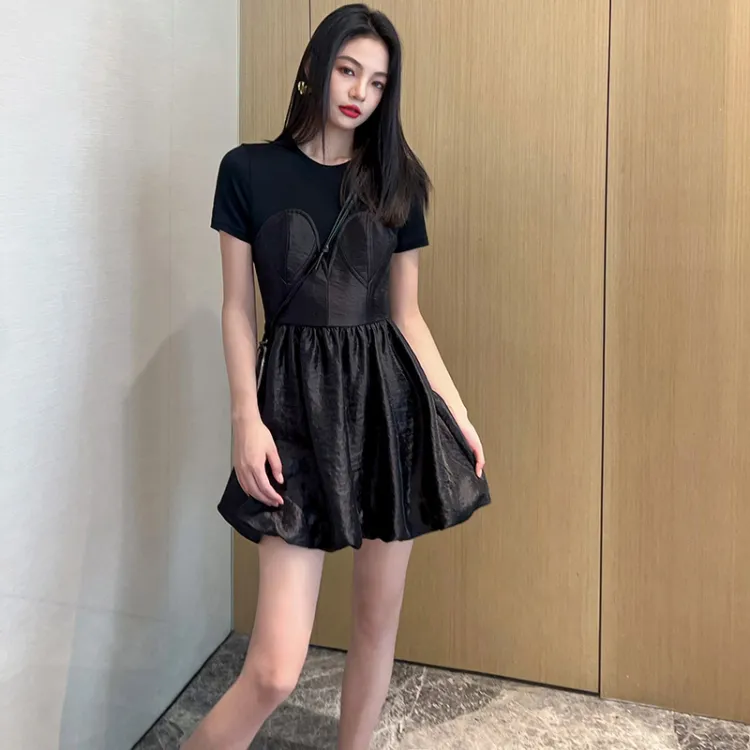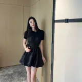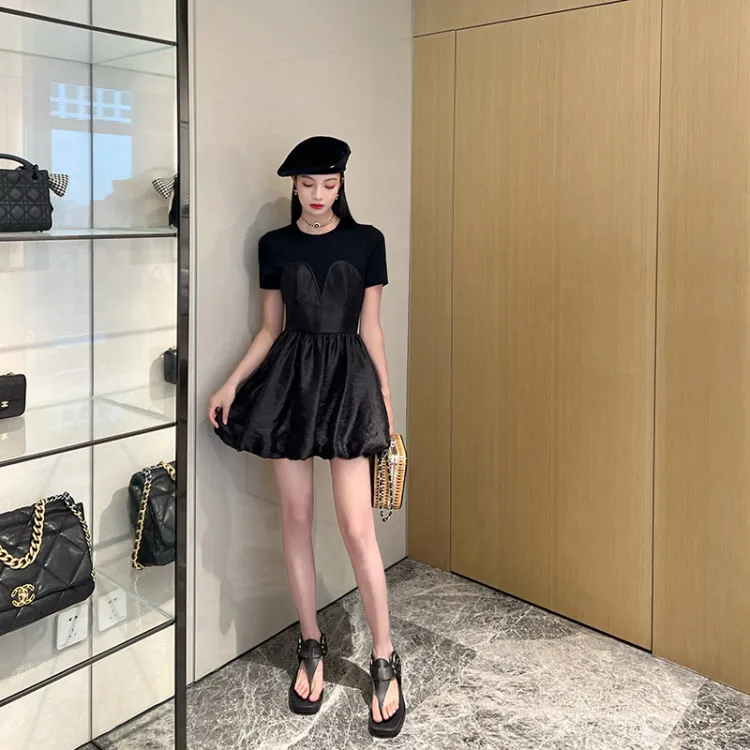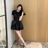 NancyCavally Короткий рукав Платье Женское Черное
