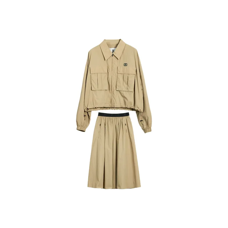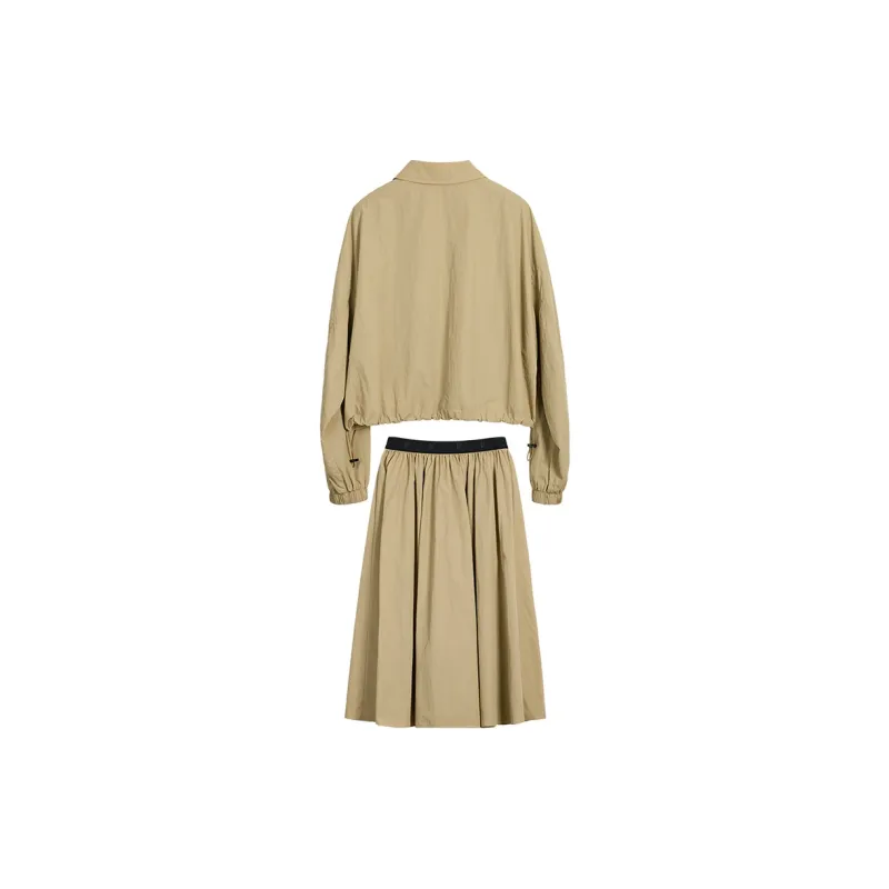 Хаки Комплект Одежды (Пальто + Юбка)
