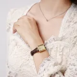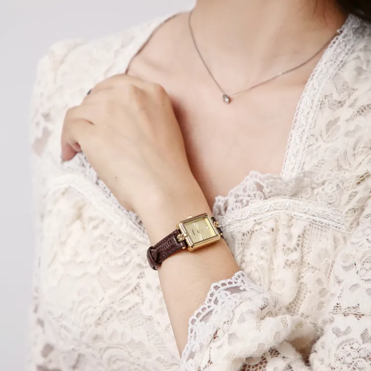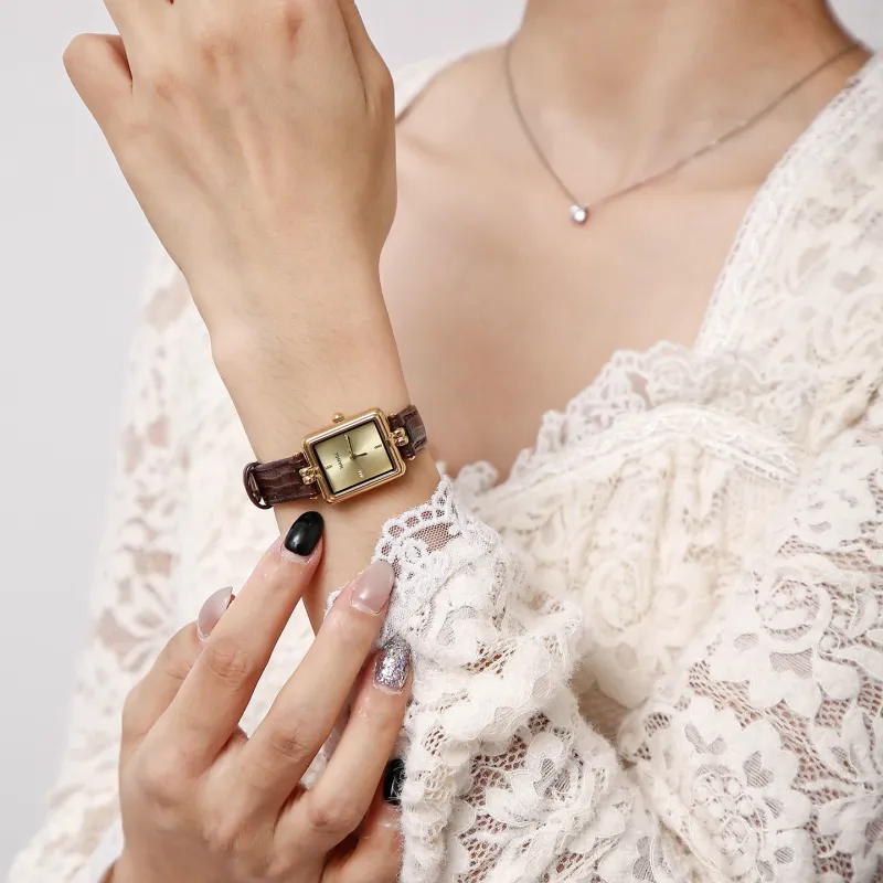 NANGL Кварцевый механизм кожаный ремешок женские часы циферблат цвета кофе