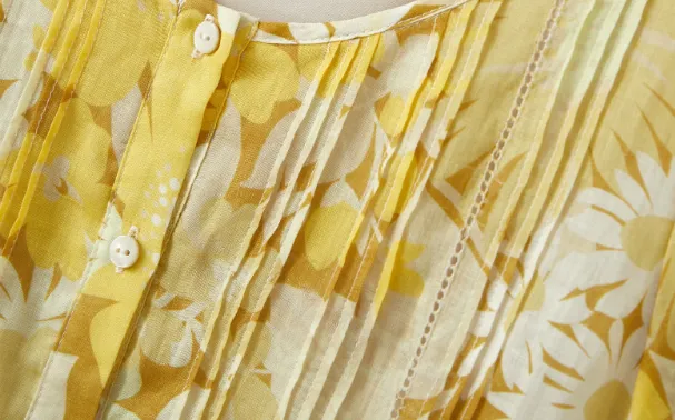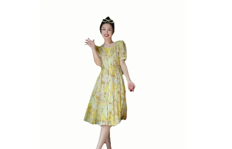 NANGUAGU Midsummer Daisy Желтый Женские Короткие Платья с Рукавами
