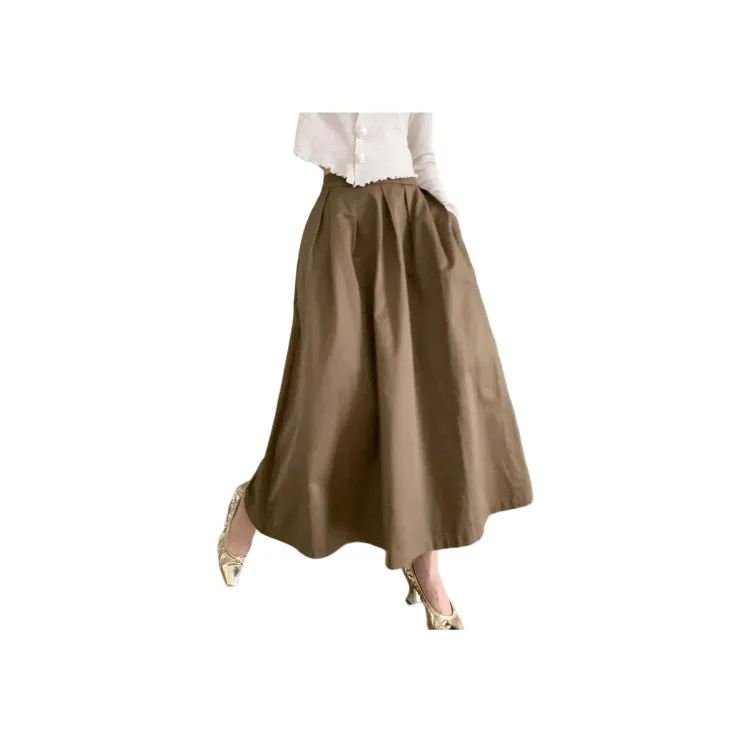 NANING9 Повседневная длинная юбка женский кофейный