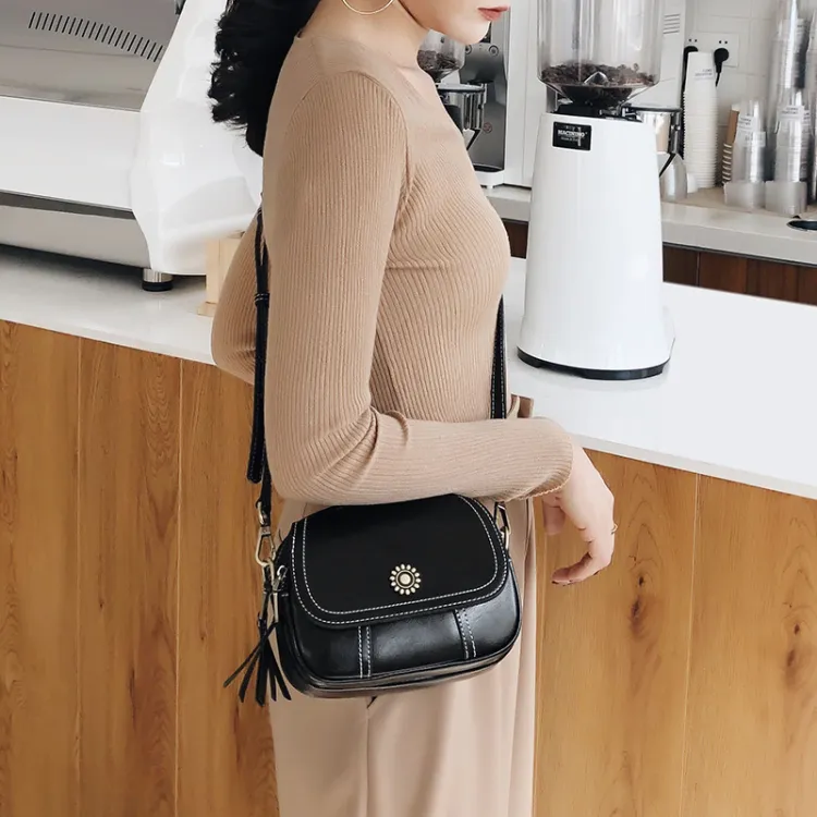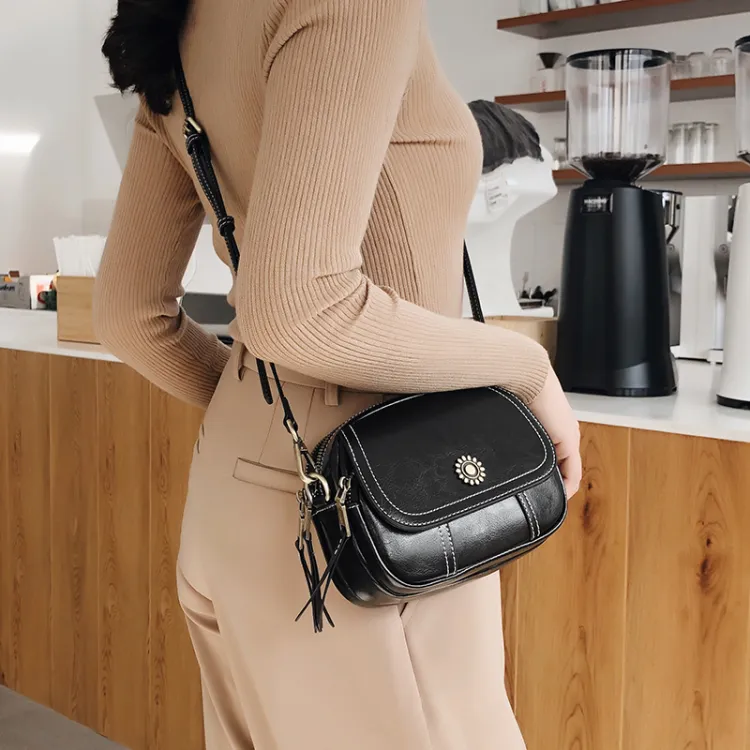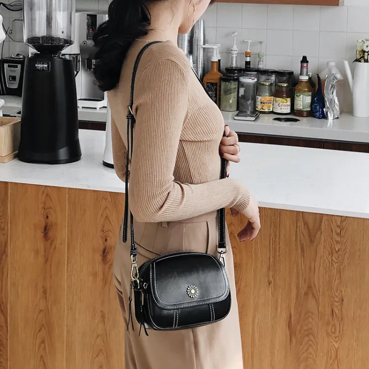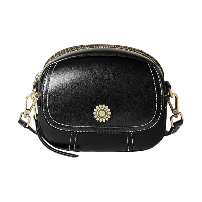 Narandu Коровья кожа Маленькая круглая сумка Сумка через плечо Сумка на плечо Маленькая Женская Черная