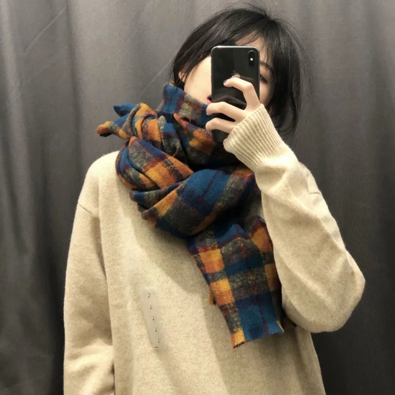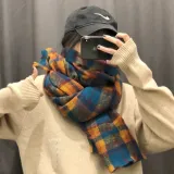 Narandu Полиэстер Трикотаж Шарфы Женские Синий Желтый Большой Клетка