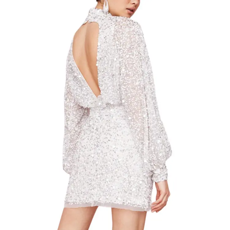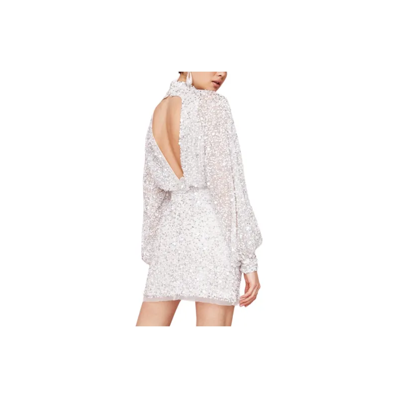 NASTY GAL Воздушный шар Рукав Сияющий Украшенный Мини Платье Длинный Рукав Платье Женское Белое