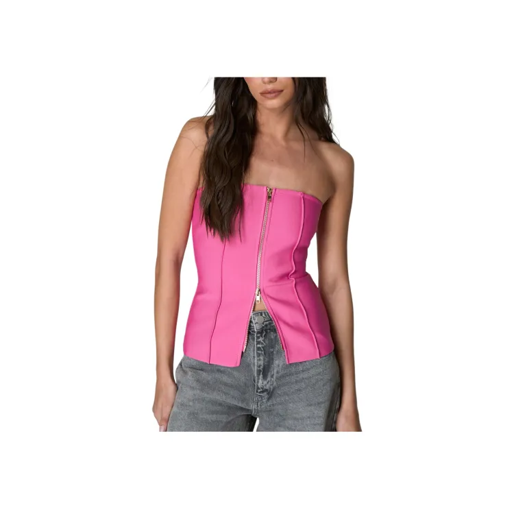NASTY GAL Бинт Zip Передняя часть Бандо Топ Без бретелей Топ Женские Розовый