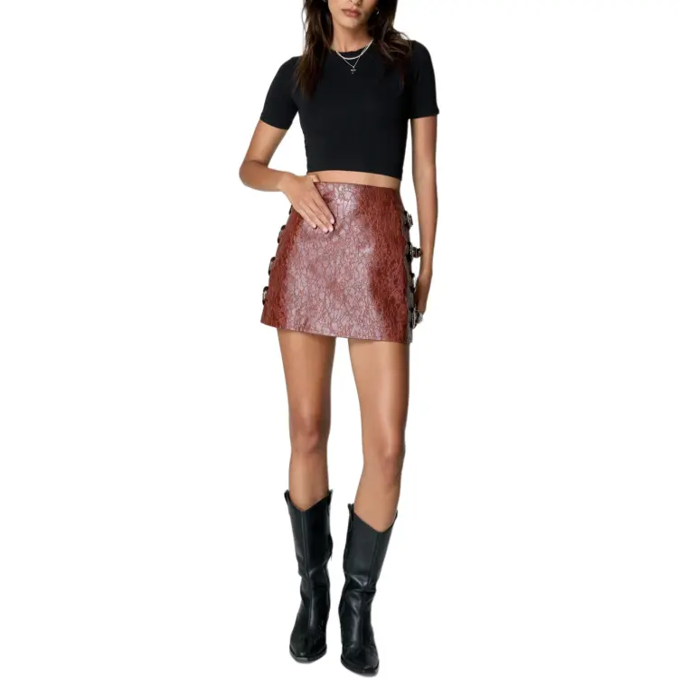 NASTY GAL Потертый искусственный кожаный материал Застежка-молния Юбка Короткая кожаная юбка Женская Ржаво-красный