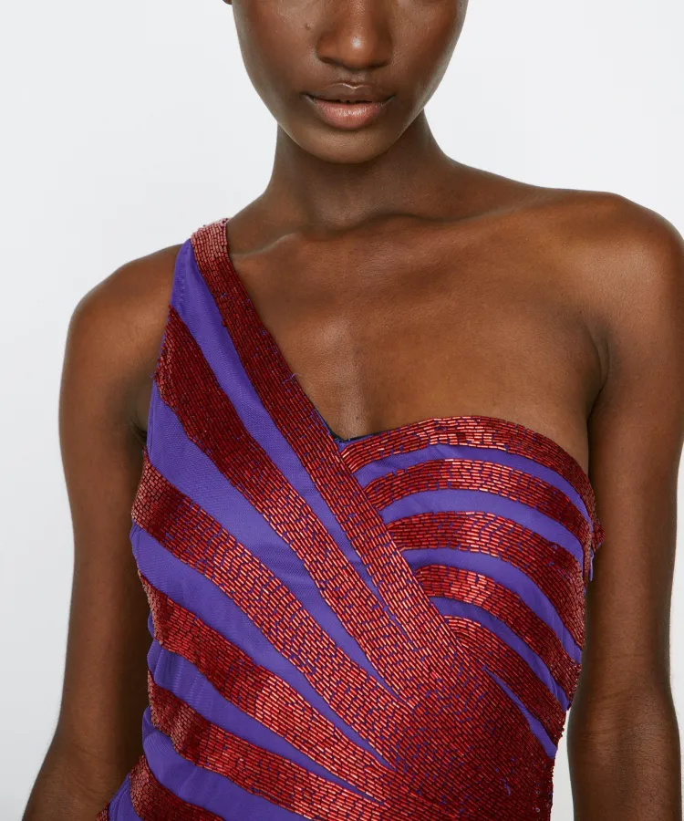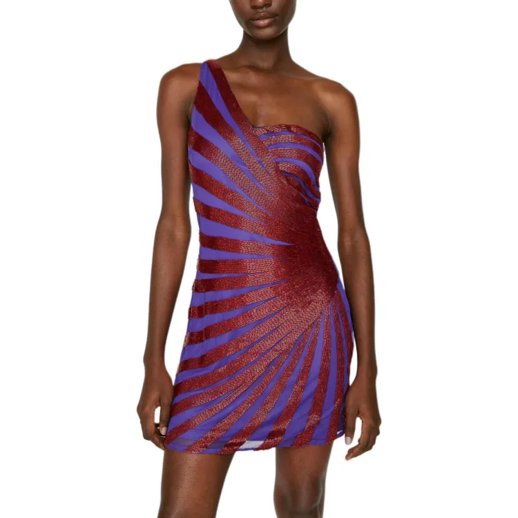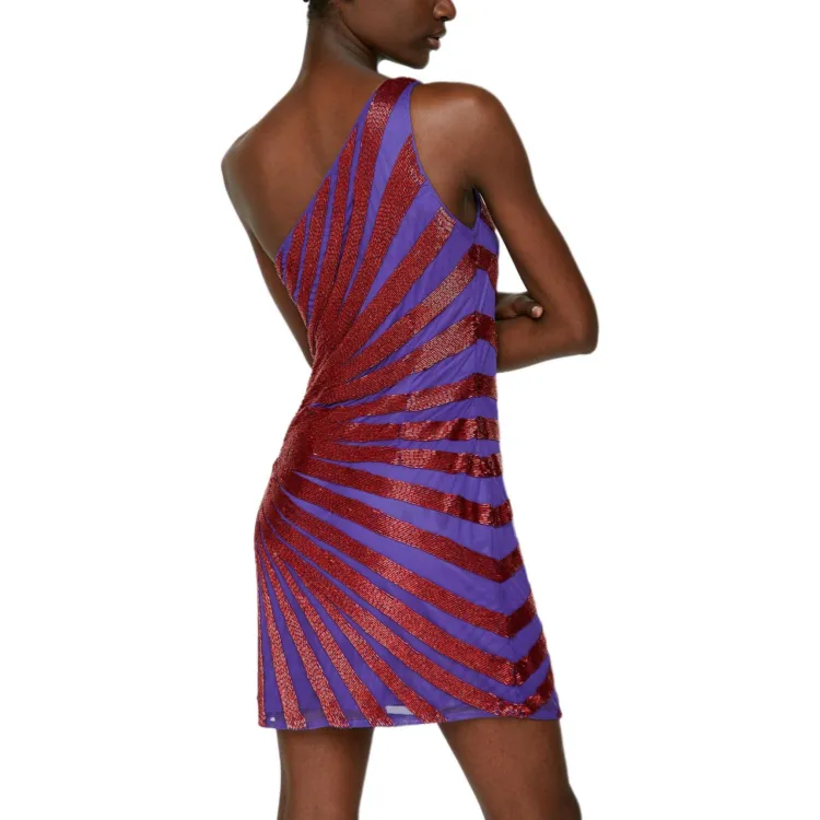 NASTY GAL Одно плечо SPIRAL Сиятельная Мини Платье Без рукавов Платье Женское Фиолетовое