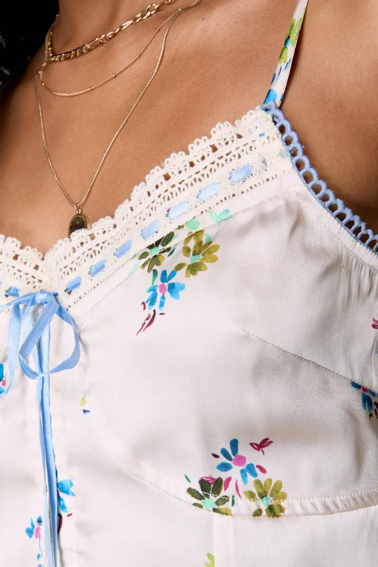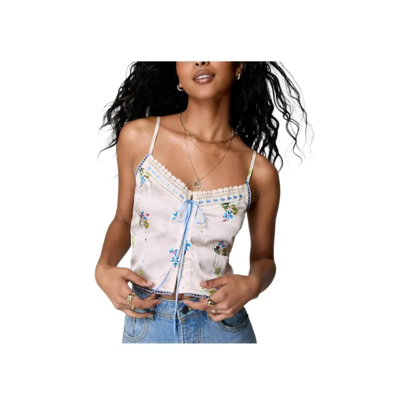NASTY GAL Сатин Ditsy Лента Кружевная отделка Арочный КОРСЕТ Топ Топ на бретелях Женские Крем