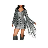 NASTY GAL Звезда Sequin Бахрома Мини Платье Длинный Sleeved Платье Женские Монохромный
