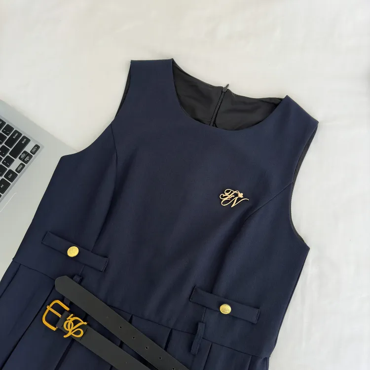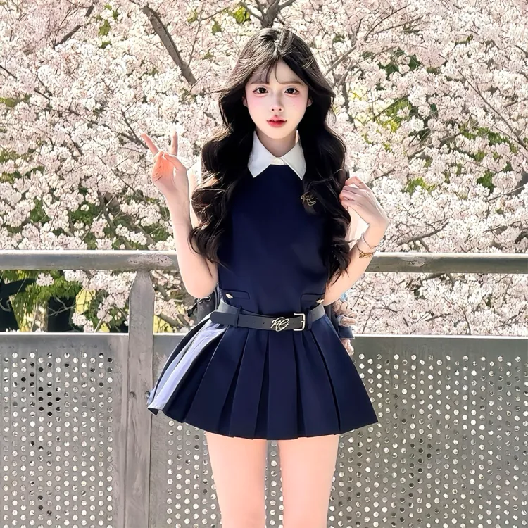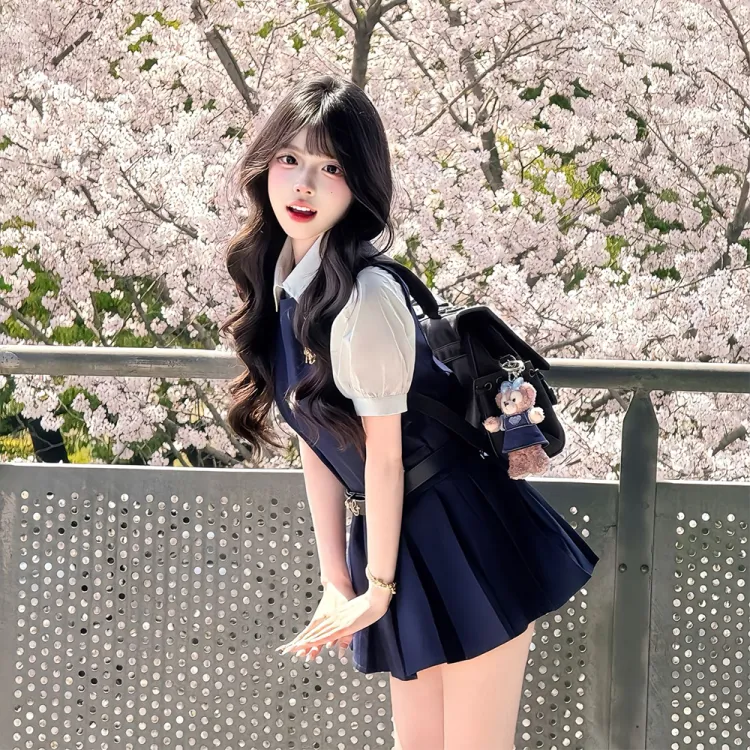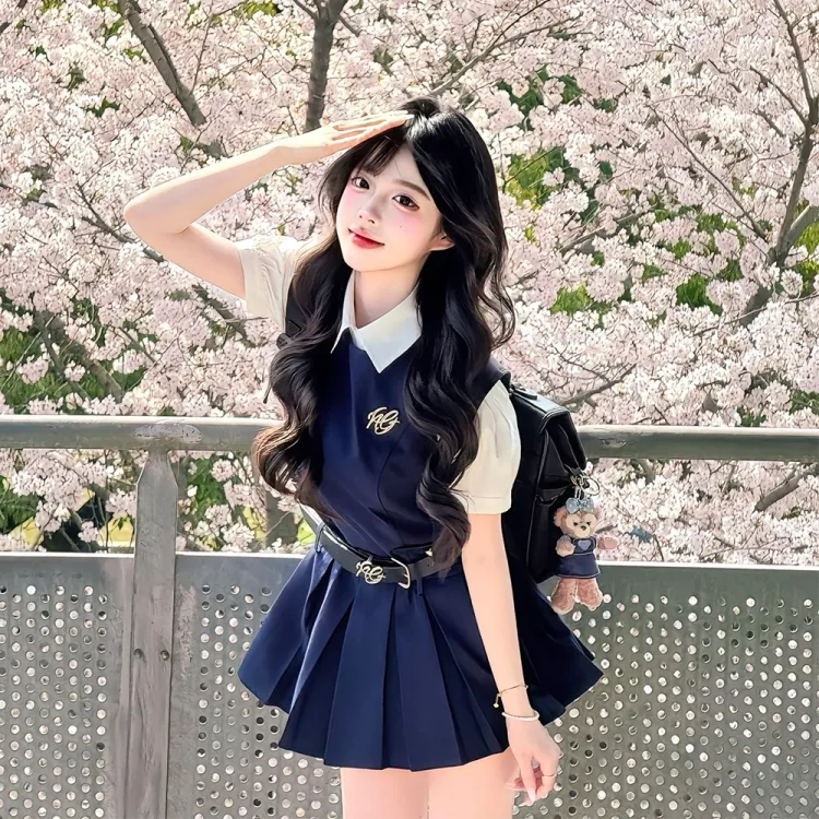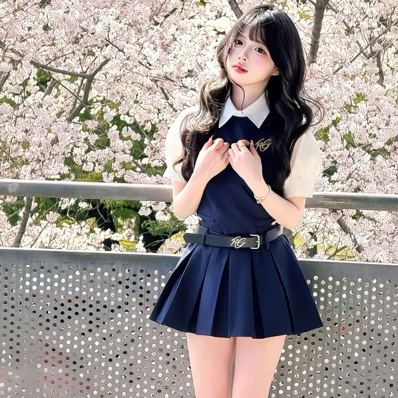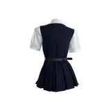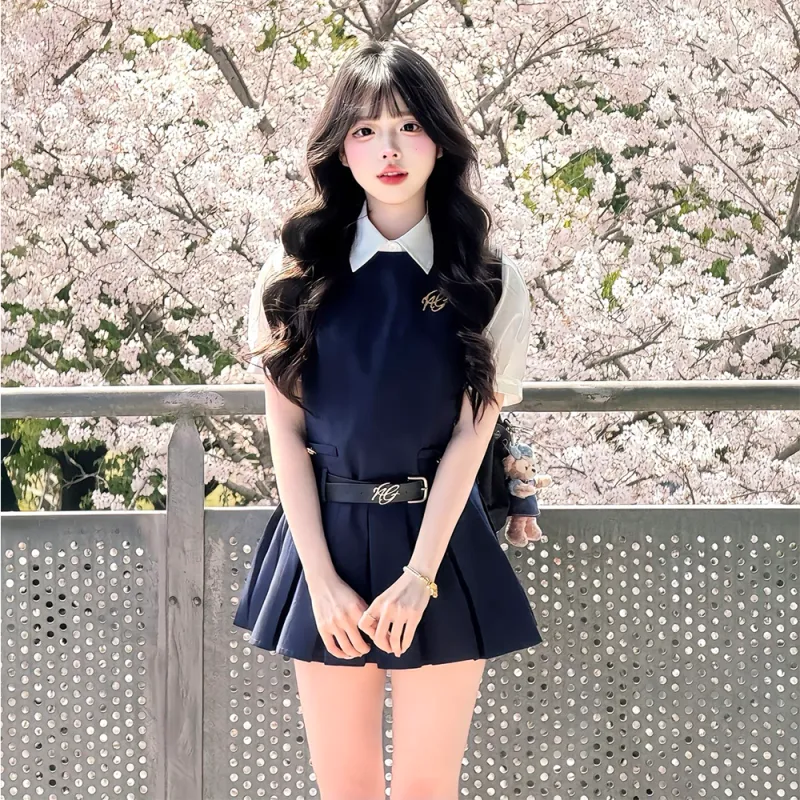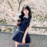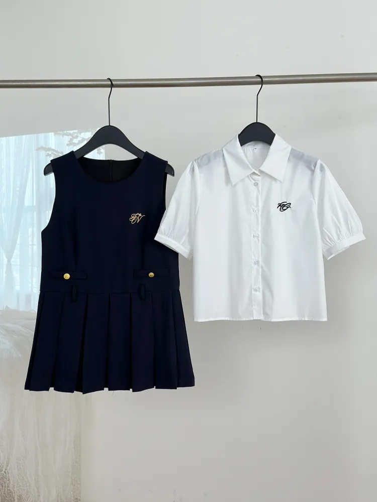 Комплект одежды (Темно-синий сарафан + Белая рубашка с короткими рукавами)