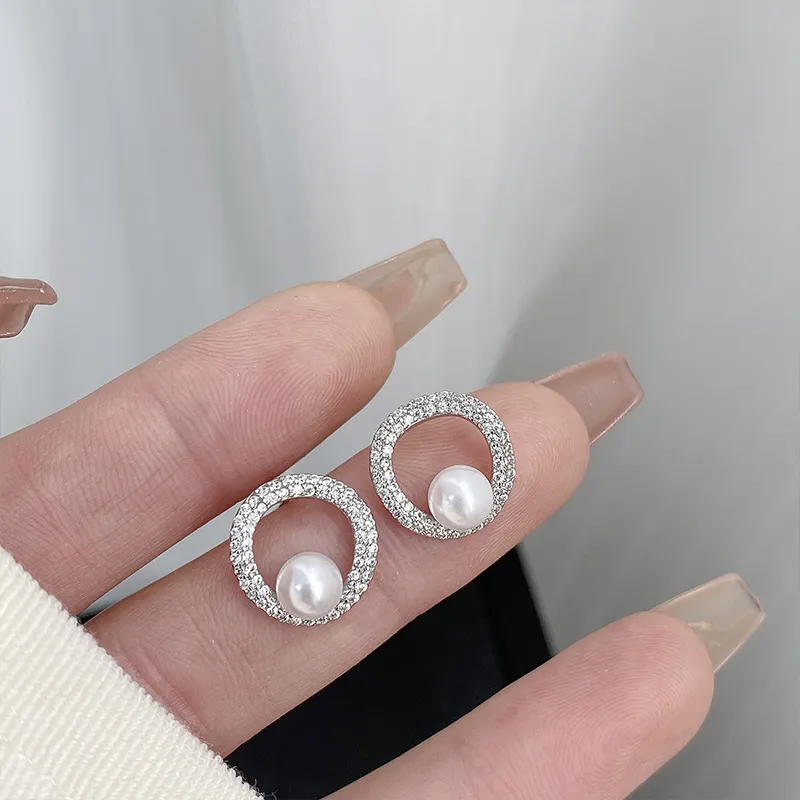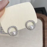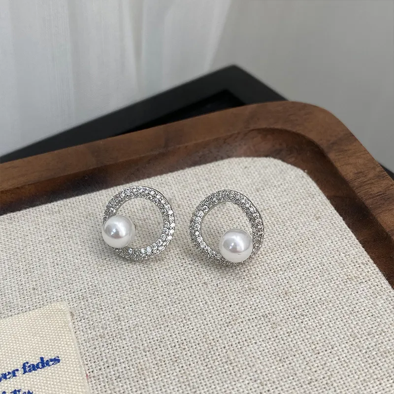 Стиль:Циркон имитация Серьги-гвоздики с жемчугом