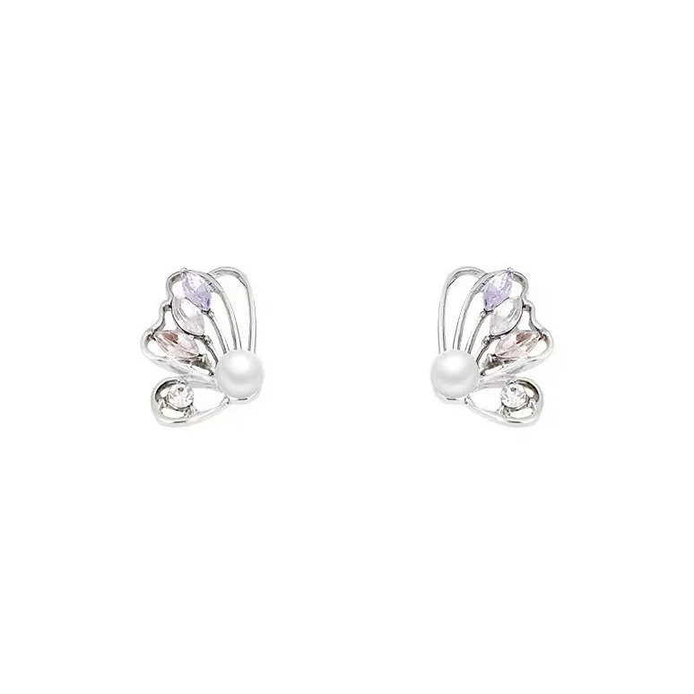 Циркон, Сплав, Искусственная жемчужина, Серебро S925, шипы