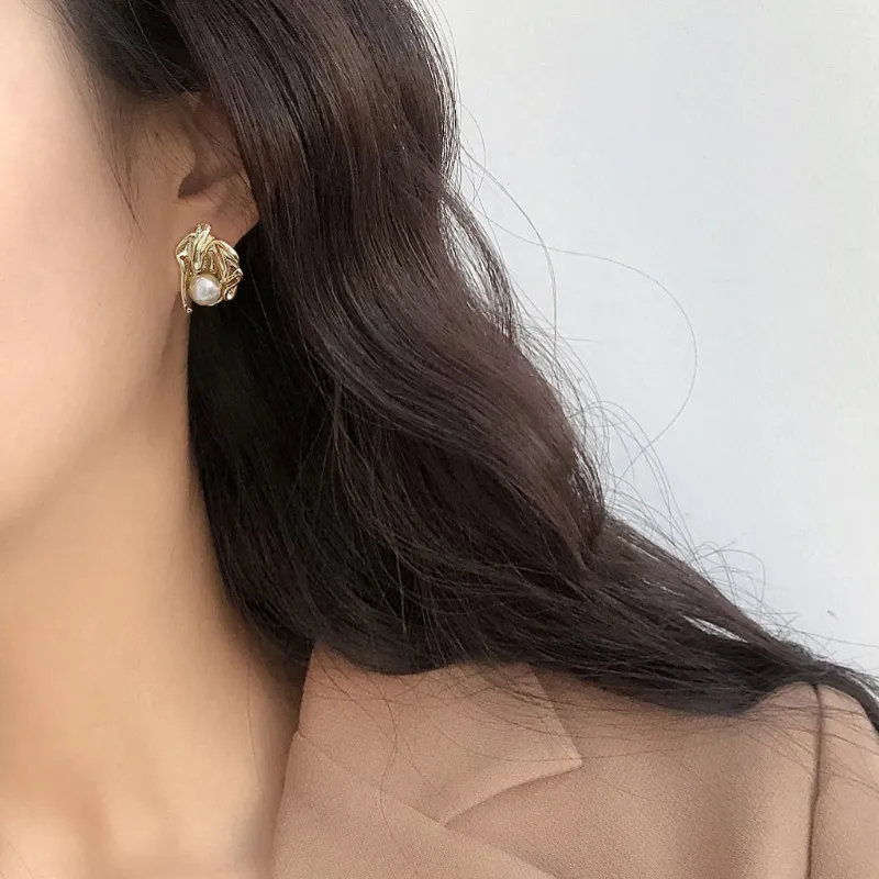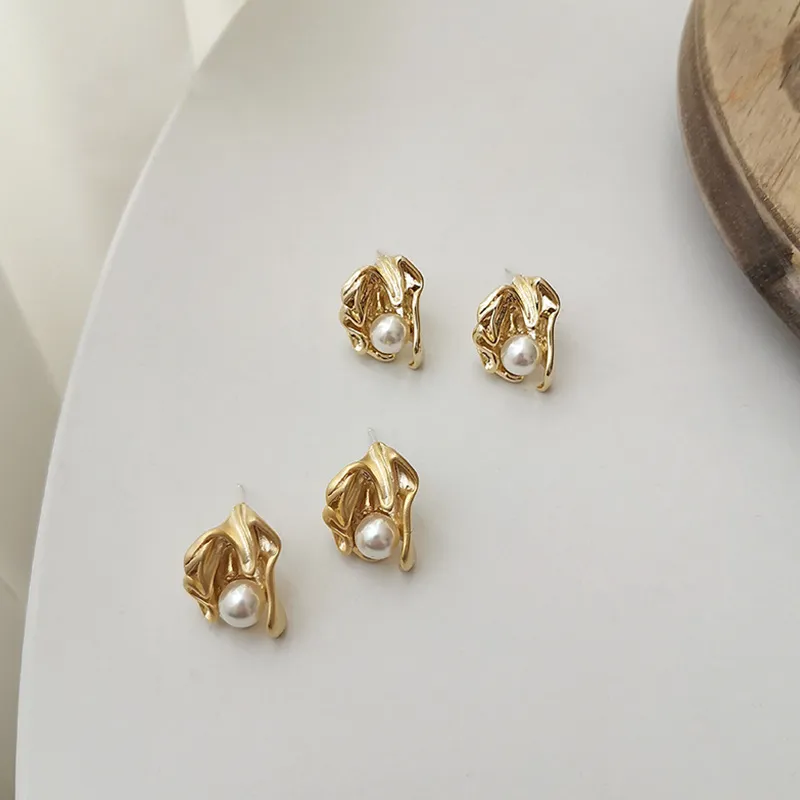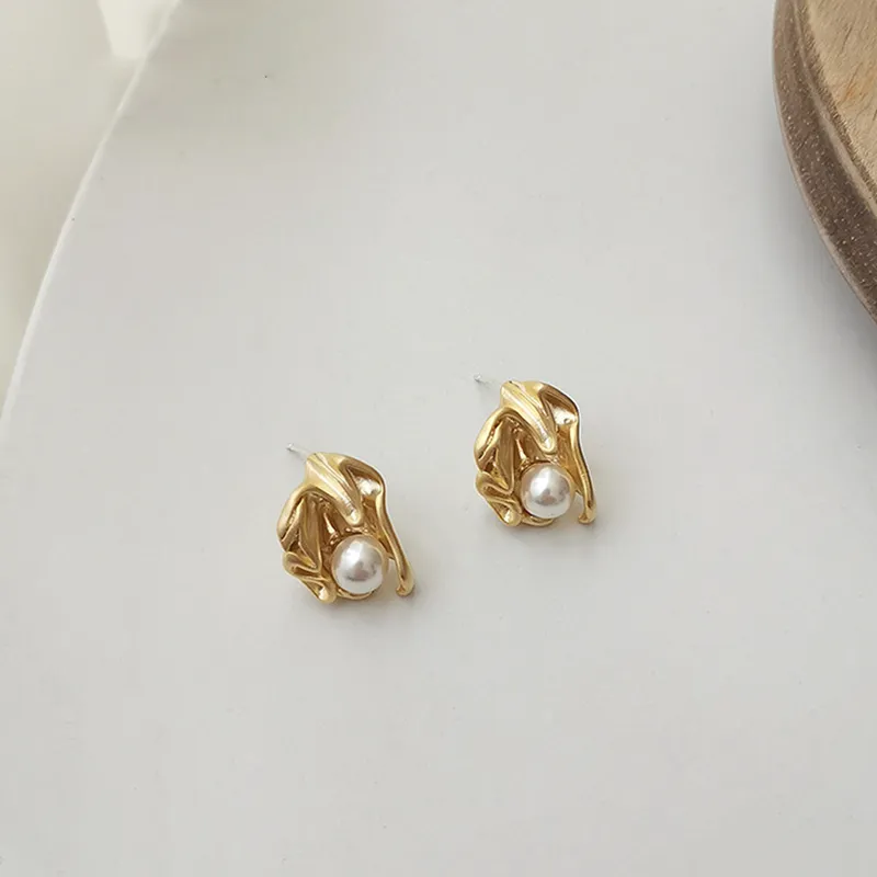 Стиль:Французские винтажные серьги-гвоздики с жемчугом