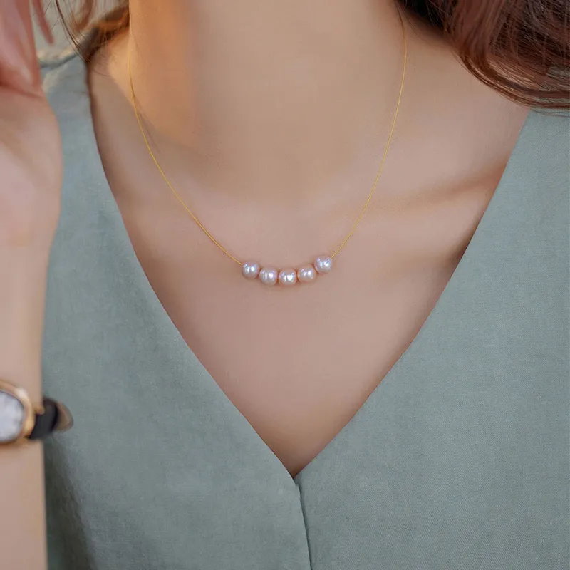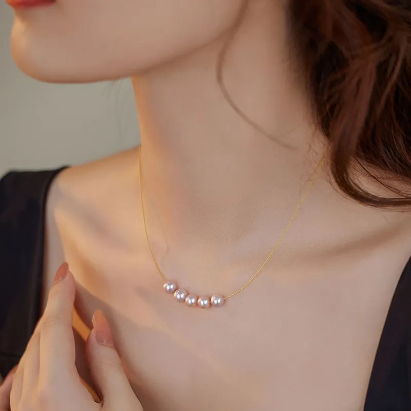NATURALLYJOJO Стальная проволока Линия Ожерелья Женские Золото Фиолетовый