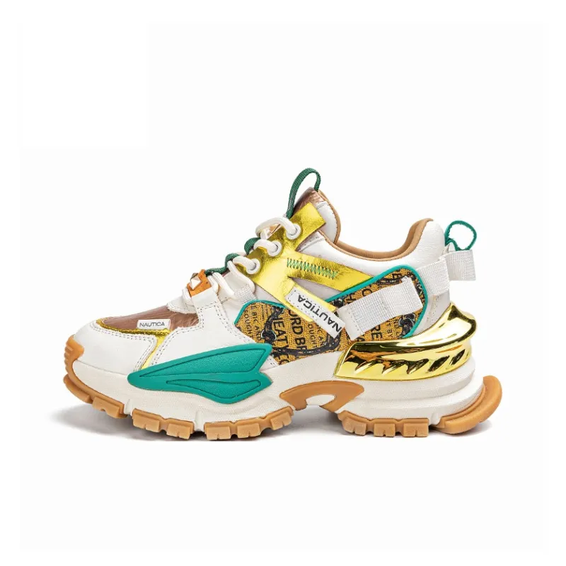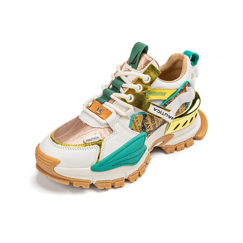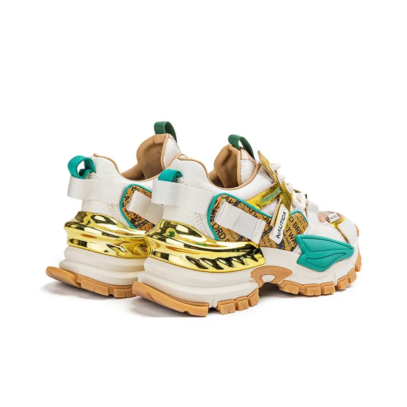 NAUTICA Устойчивые к истиранию Баланс Увеличение Высоты Низкий Топ Кроссовки с Толстой Подошвой Женские Белые Зеленые
