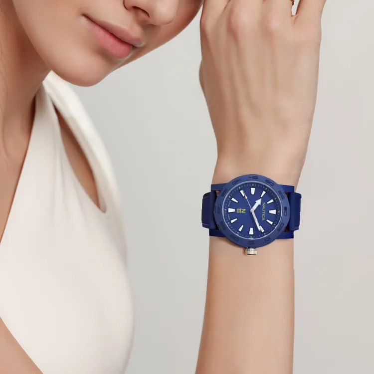 NAUTICA Наручные часы Кварцевый механизм ПУ (полиуретан) Ремешок 44 мм Синий циферблат Унисекс