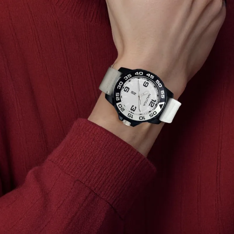 NAUTICA Наручные часы Кварцевый механизм ПУ (полиуретан) Ремешок 45 мм Белый циферблат Мужские часы