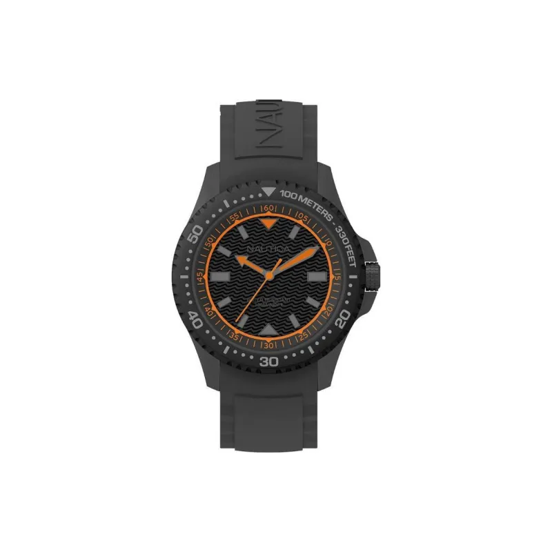 NAUTICA Мужские часы Кварцевый механизм Силиконовый ремешок 44 мм Черный циферблат