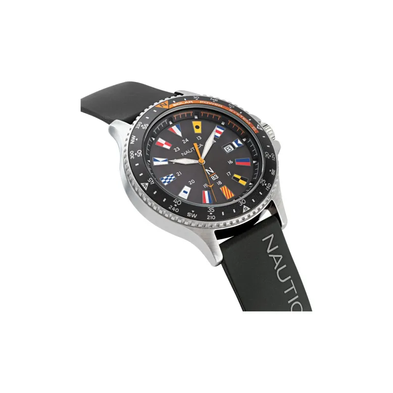 NAUTICA Наручные часы Солнечный кварцевый механизм силиконовый ремешок 43 мм черный циферблат унисекс