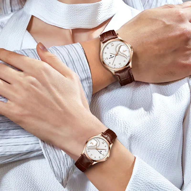 NAVIGARE Cherished Love Collection Кварцевый механизм Естественная кожа Ремешок Часы Унисекс Белый циферблат