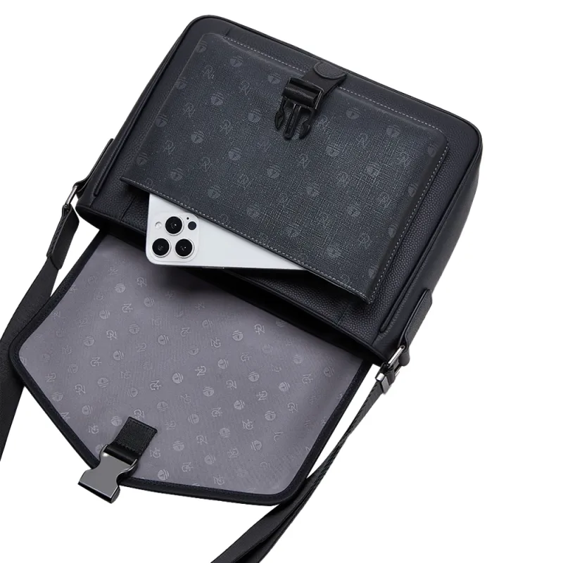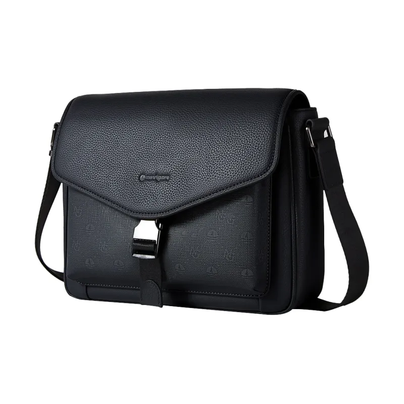 NAVIGARE Сумка через плечо из коровьей кожи с ПВХ средний размер мужская черная