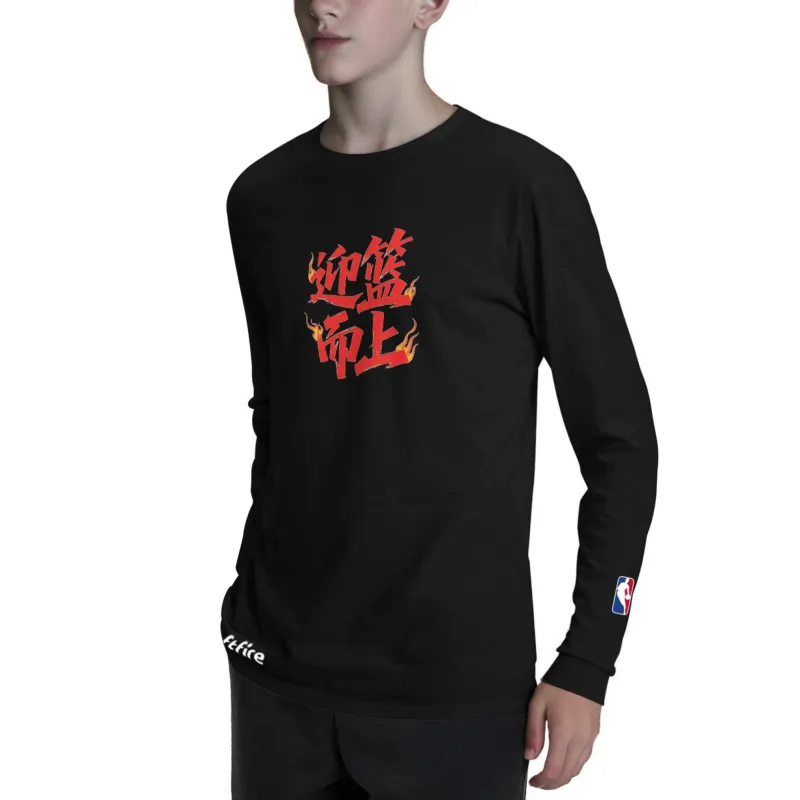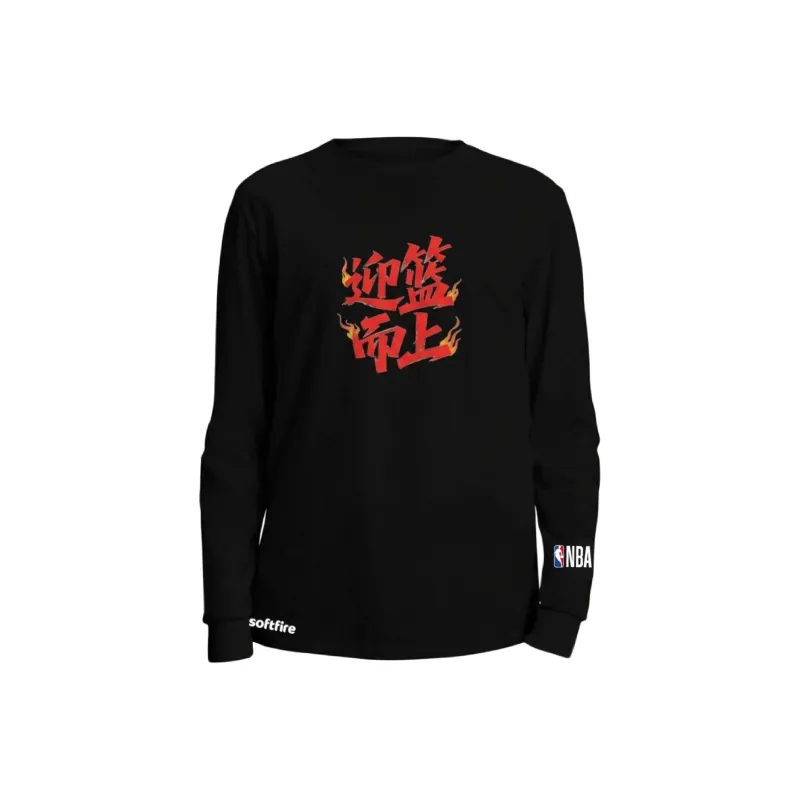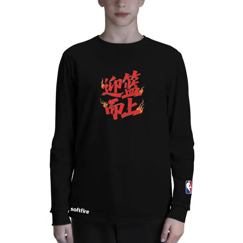 NBA Длинный рукав круглый вырез футболка весна-осень SOFTFIRE с принтом для подростков модный тренд черный унисекс