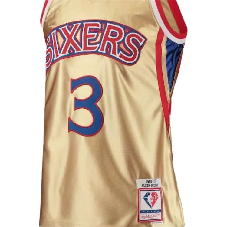 NBA x MITCHELL NESS Philadelphia 76ers Allen Iverson Баскетбол Джерси Классический Фанатская версия Мужской Золотой